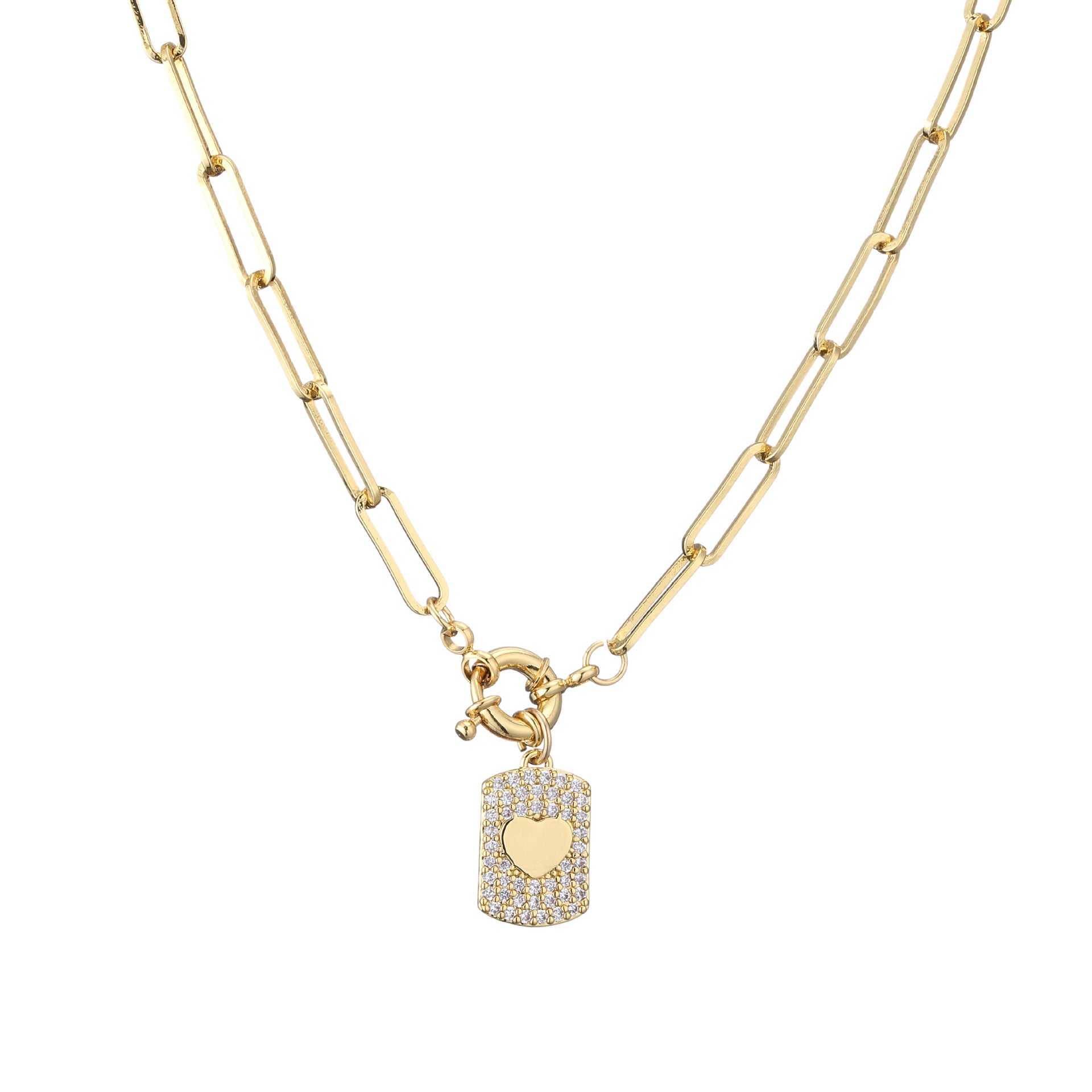 Dual-Tone Zircon Star and Heart Pendant Copper Necklace