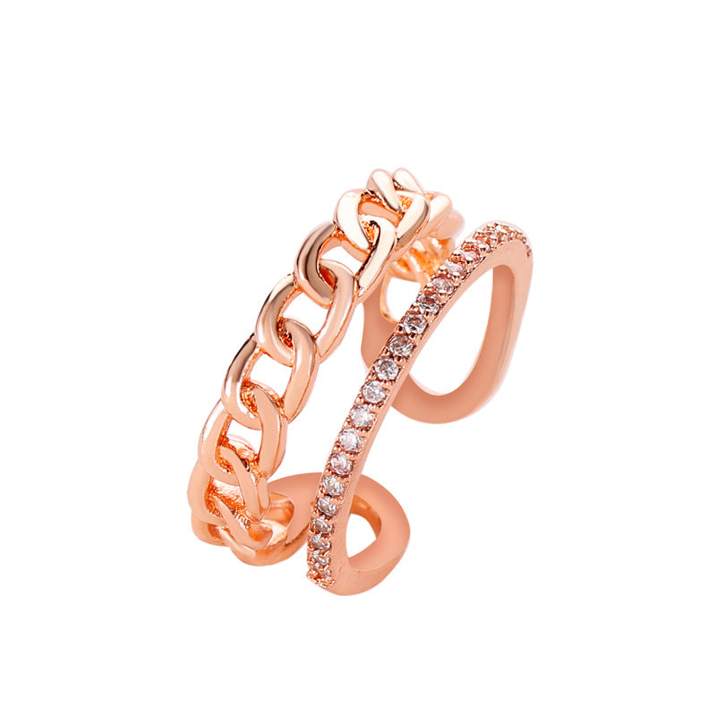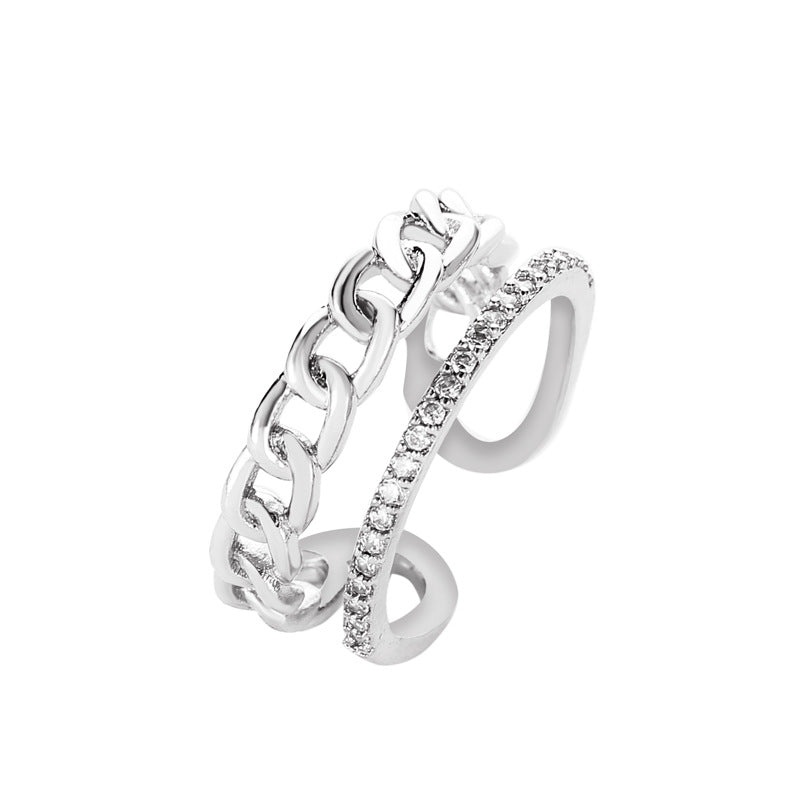 Fashion Double Layer Leaf Butterfly Zircon Adjustable Open Ring