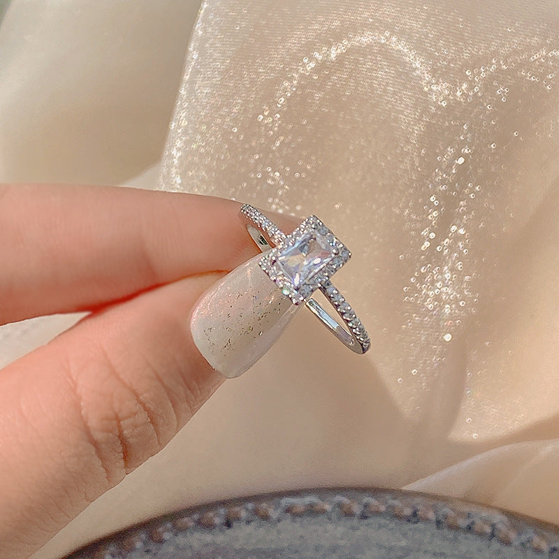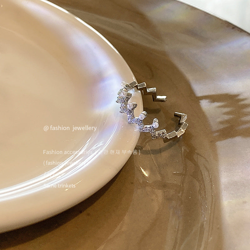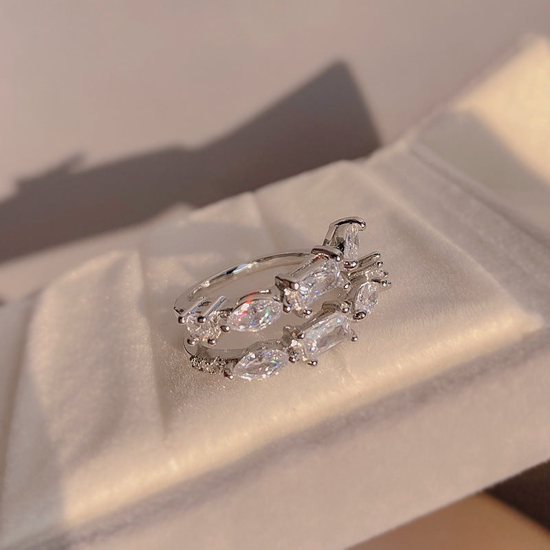 Opening adjustable / J306 Silver-Copper Geometric Zircon Ring