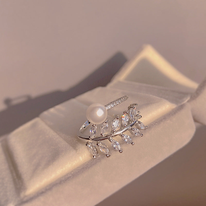 Fashion Leaf Zircon Adjustable Open Ring for Women