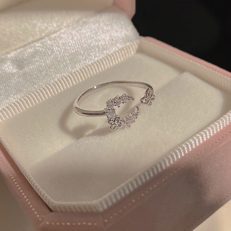 Opening adjustable / J673 Silver-Bronze Butterfly Moon Ring without box