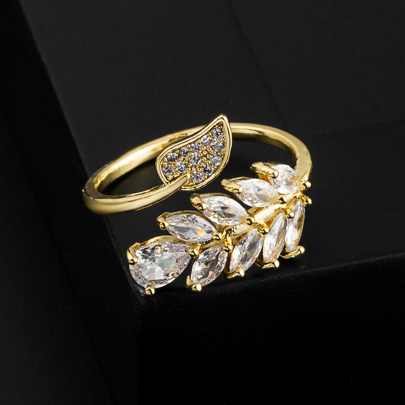 Fashion Geometric Leaf Gold Plated Zircon Open Ring