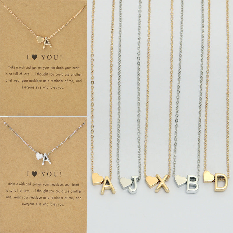 Fashion Heart Alphabet Pendant Necklace - Minimalist Copper Plated Design