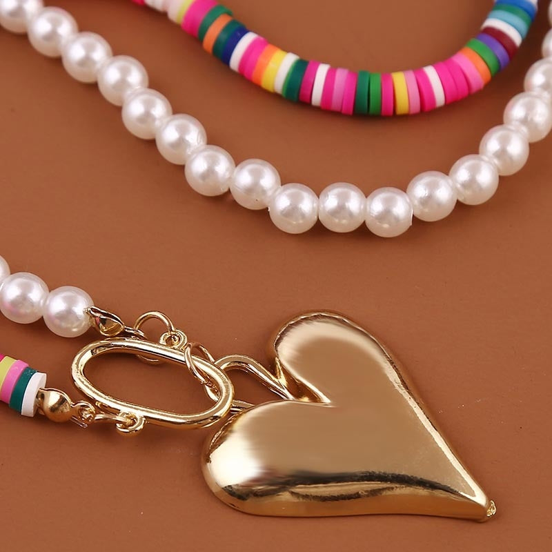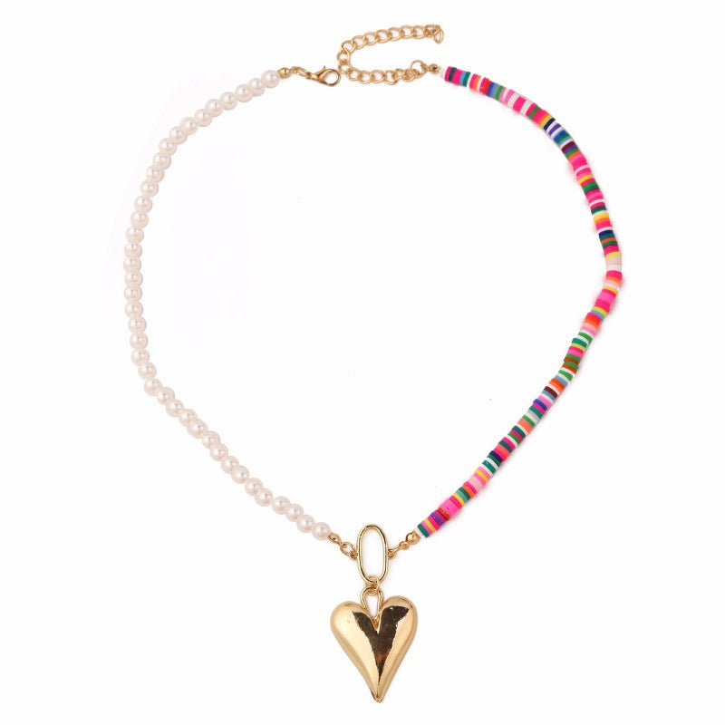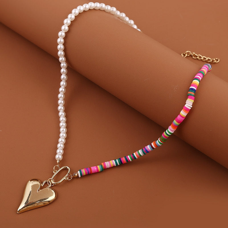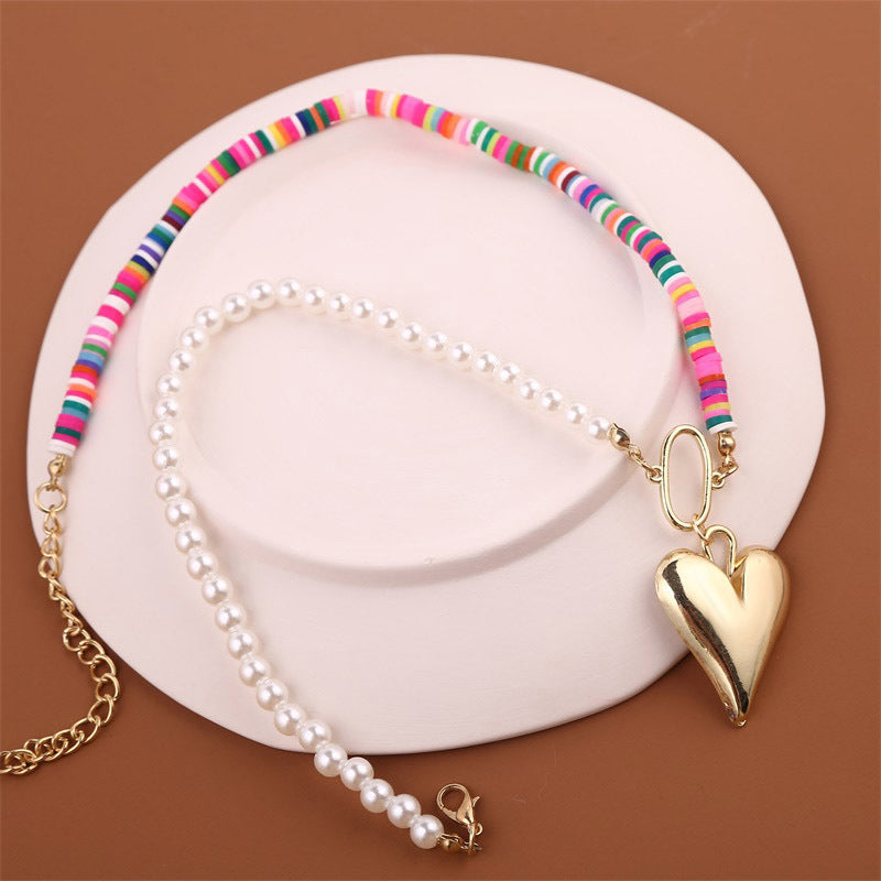 Fashion Asymmetrical Soft Clay Heart Necklace - Bohemian Style Pendant Jewelry