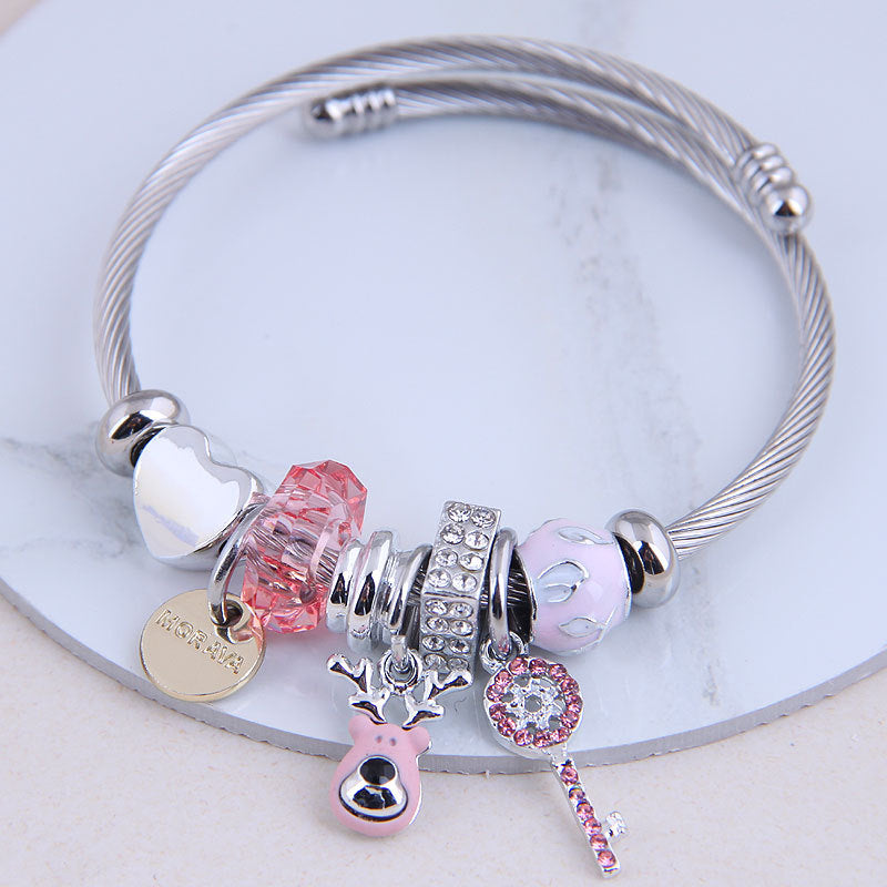 Fashion Metal Flash Diamond Bear & Fruit Charm Bracelet