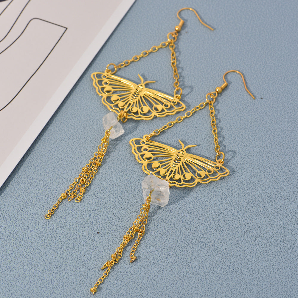 Bohemian Moon Flower Butterfly Tassel Hollow Out Women's Drop Earrings