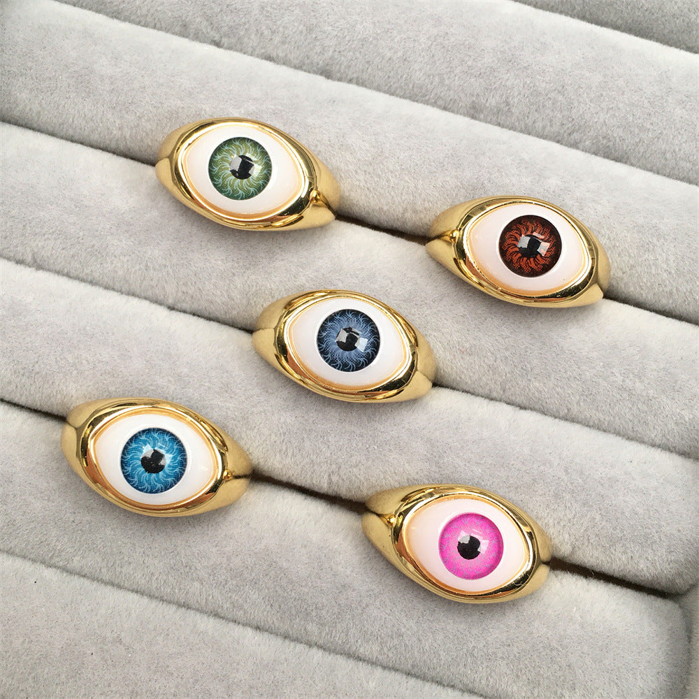 Fashion Devil's Eye Resin Adjustable Copper Ring