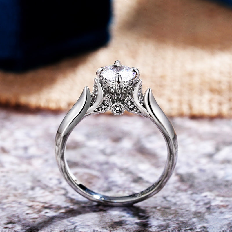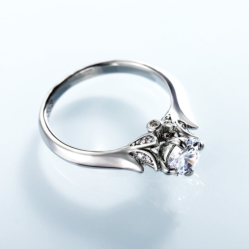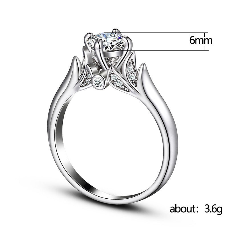 Fashion Classic Four-Claw Shining Zircon Copper Engagement Ring