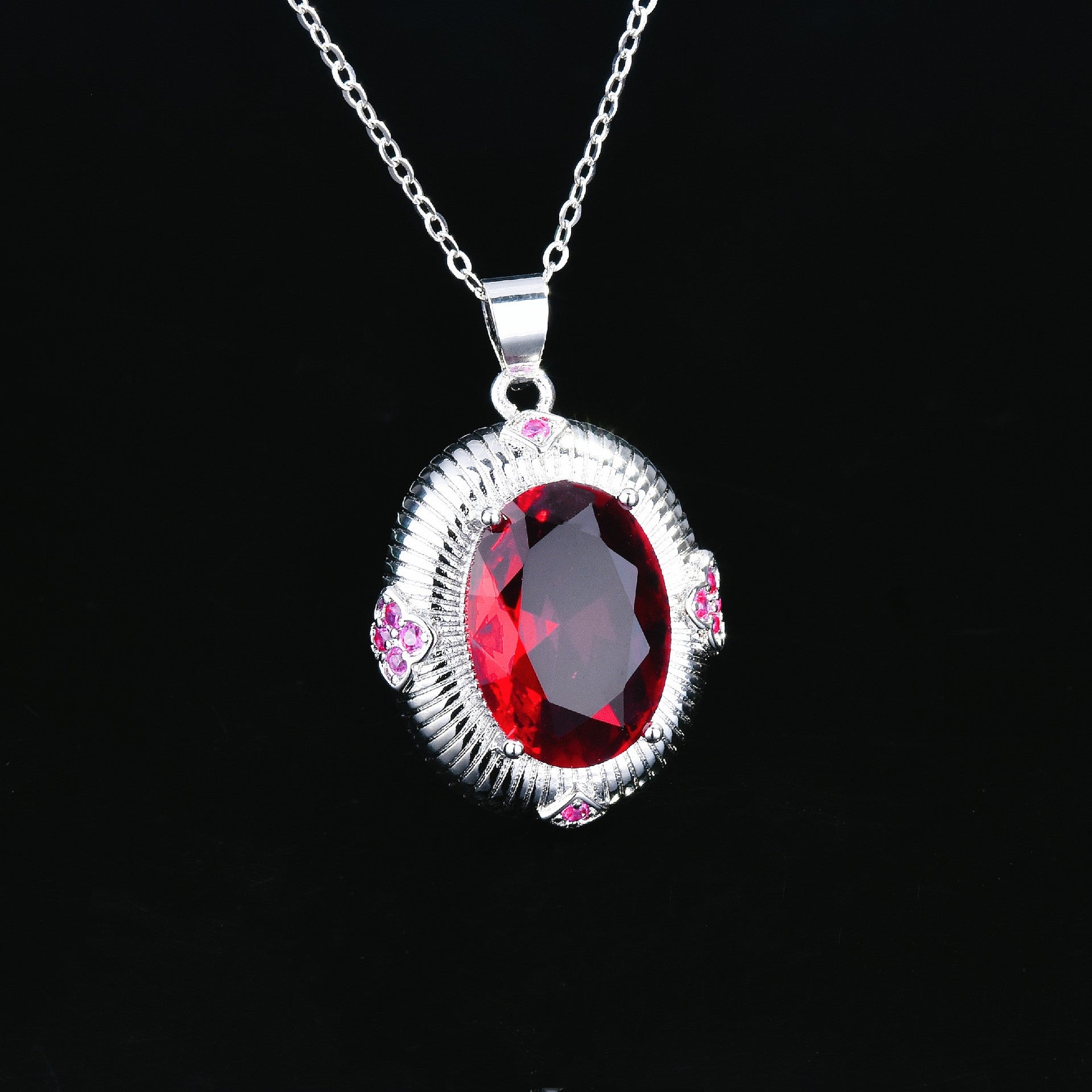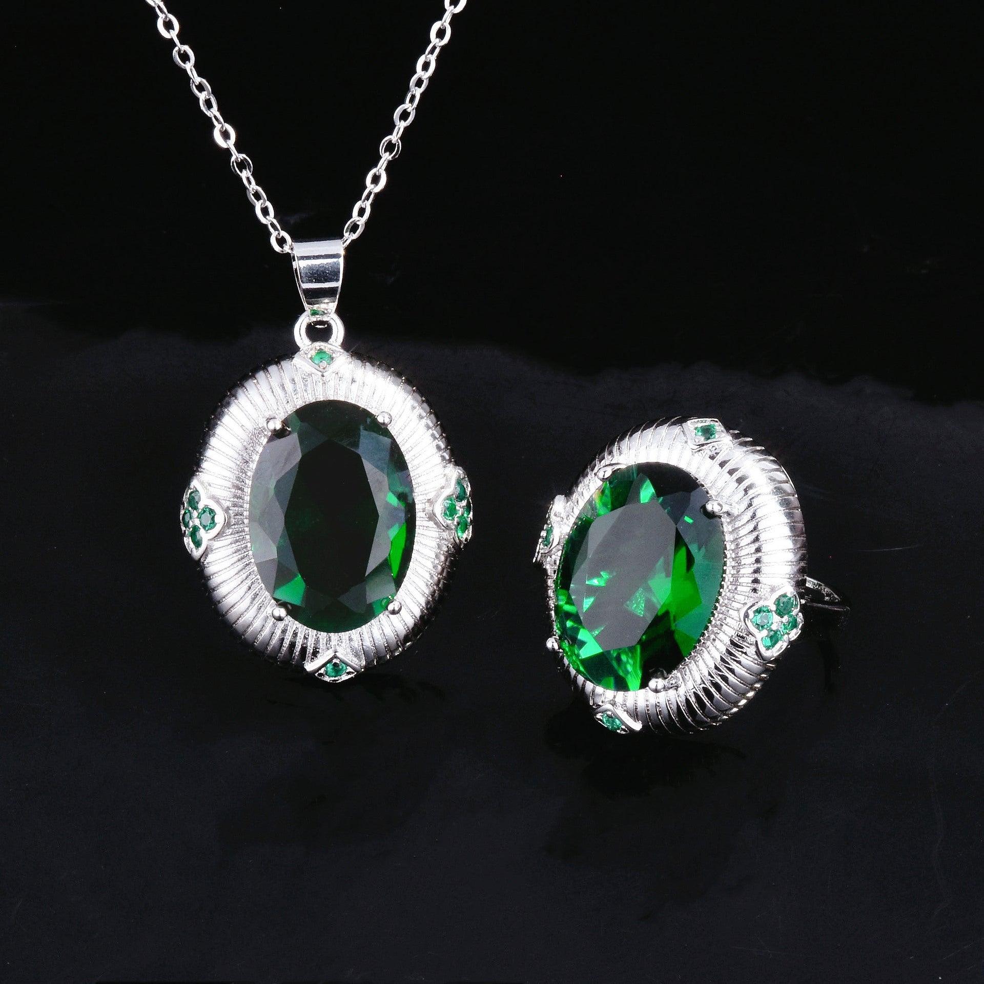 Fashion Oval Copper Gemstone Jewelry Set - Ruby & Emerald Rings, Earrings, Necklace