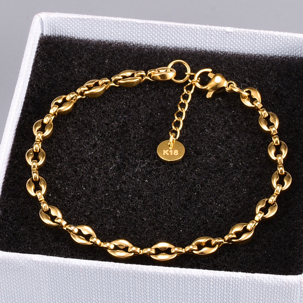 Oval Pig Nose Coffee Bean Titanium Steel Bracelet - 18k Gold Plated Women's Jewelry