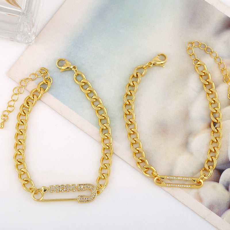 Fashion Copper Zircon Letter Mom Paperclip Bracelet