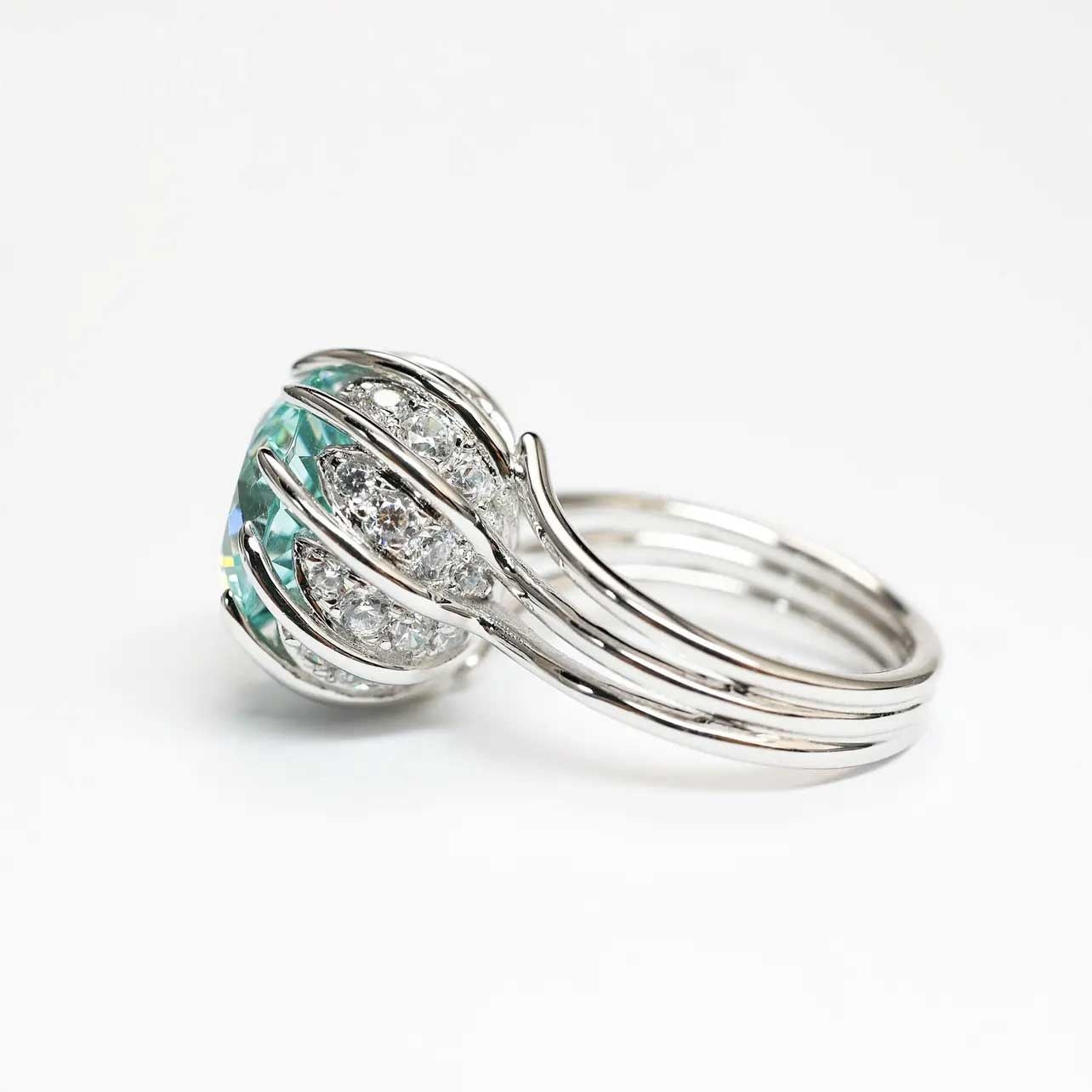 Paraiba Blue-Green Diamond Lotus Copper Adjustable Ring