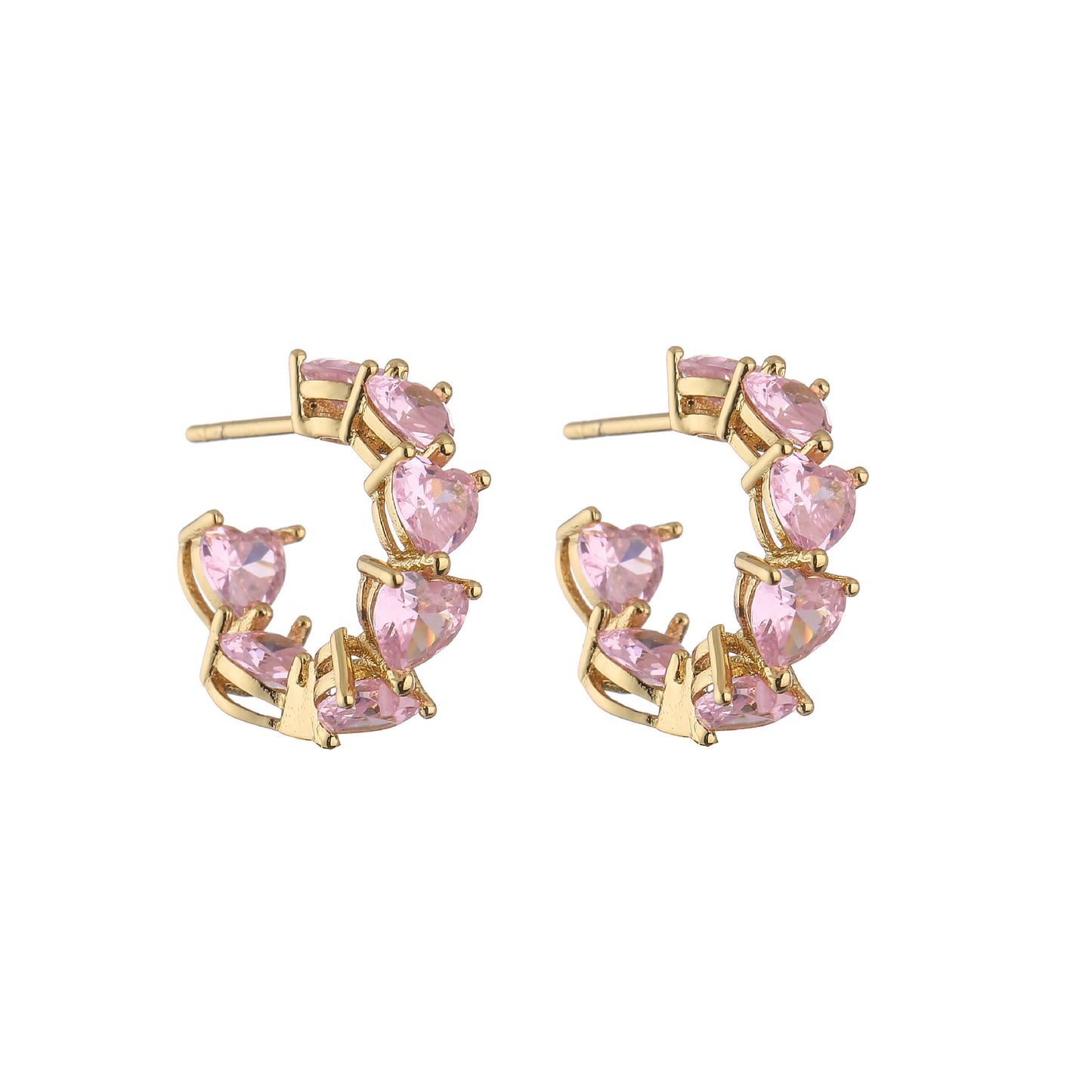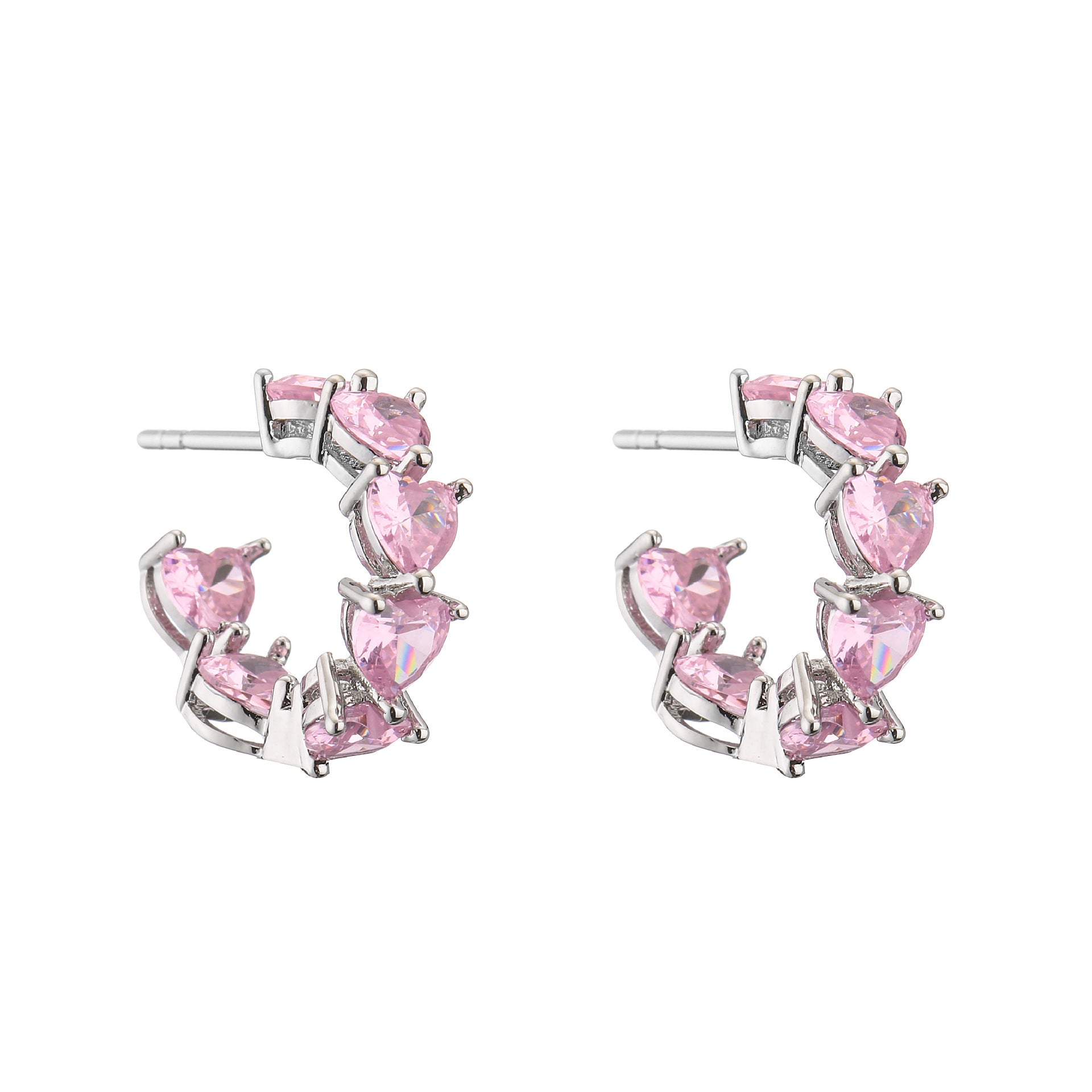 Fashion Pink Heart-shaped Zircon Earrings and Adjustable Ring Set