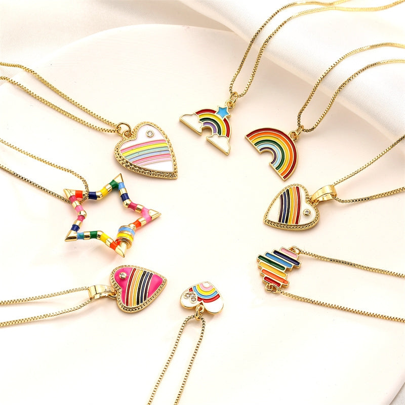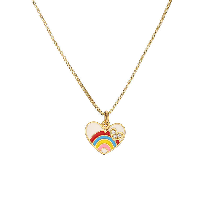 Rainbow Heart & Star Zircon Pendant Necklace - Copper Enamel Choker