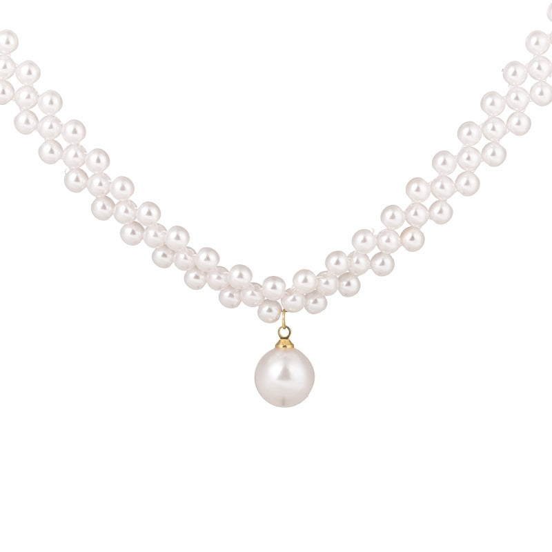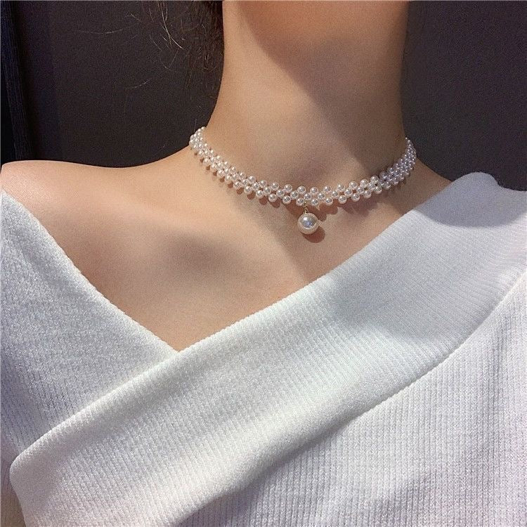 Fashion Retro Pearl Braided Choker Necklace Alloy Clavicle Chain