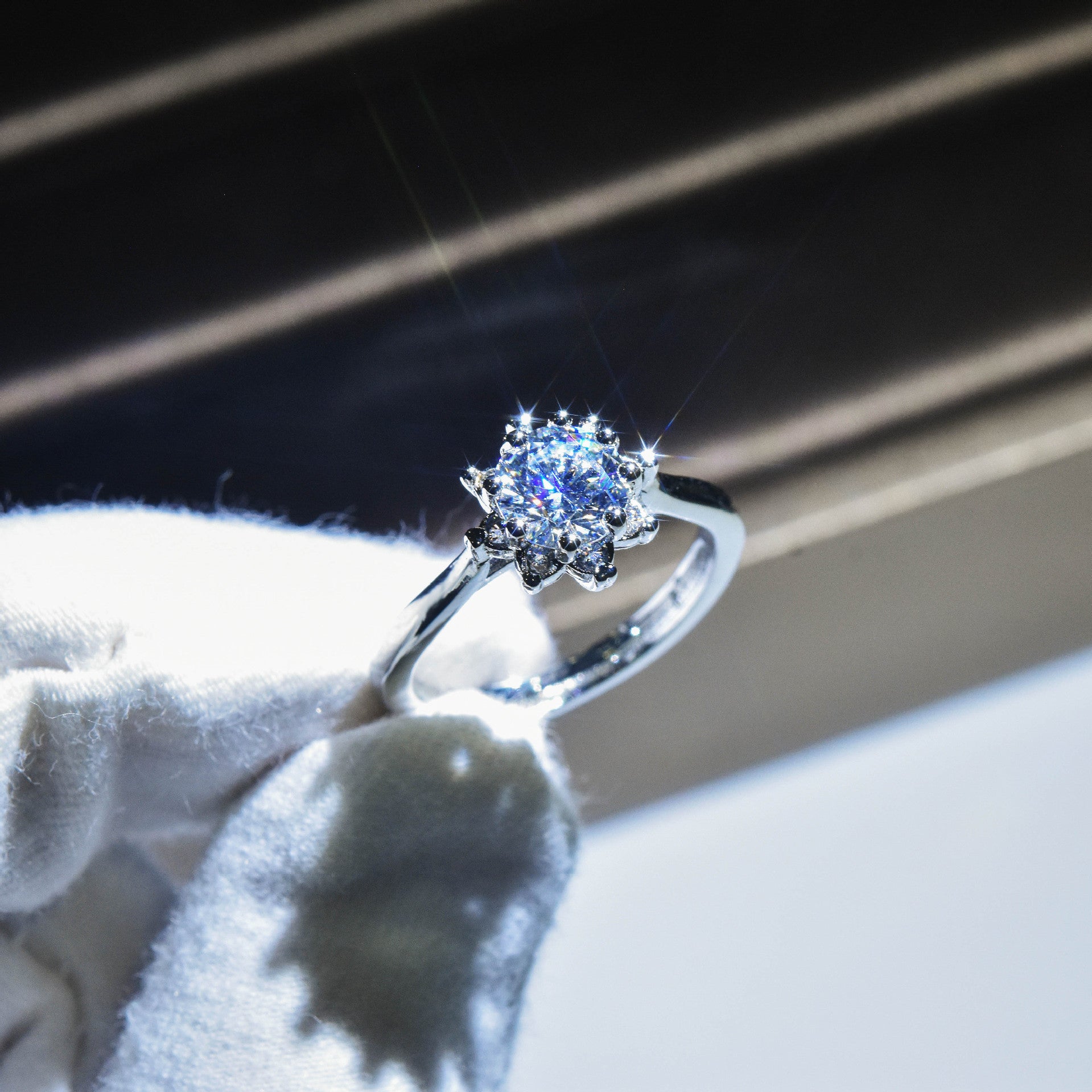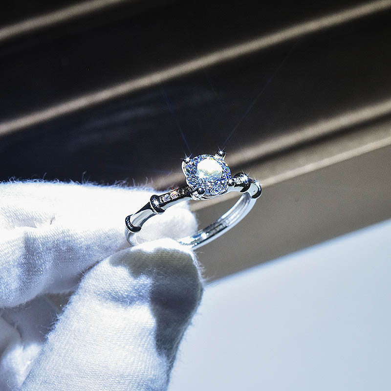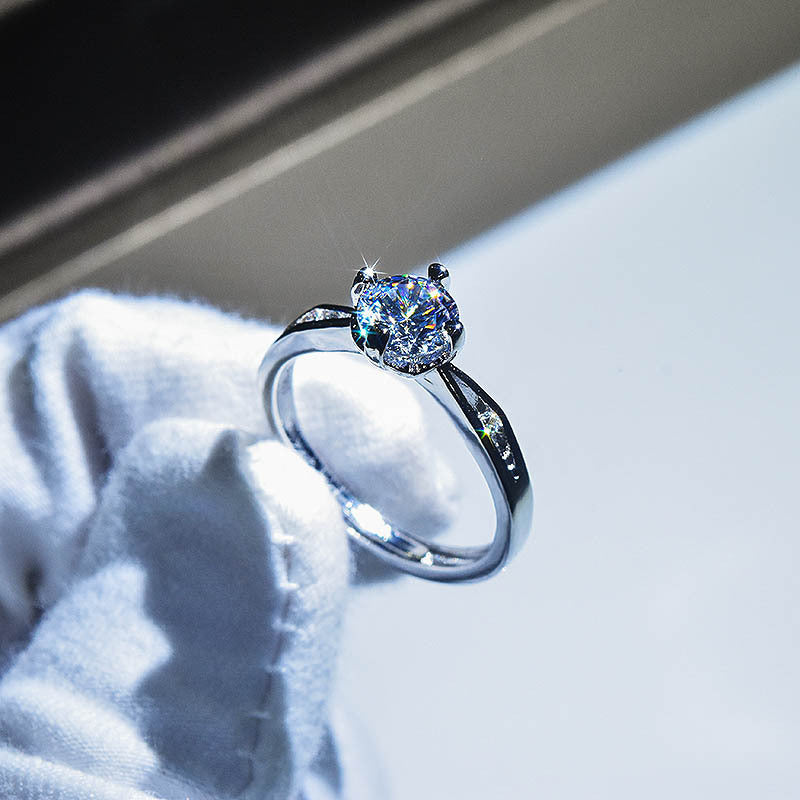 Fashion Round Copper Inlay Moissanite Adjustable Ring