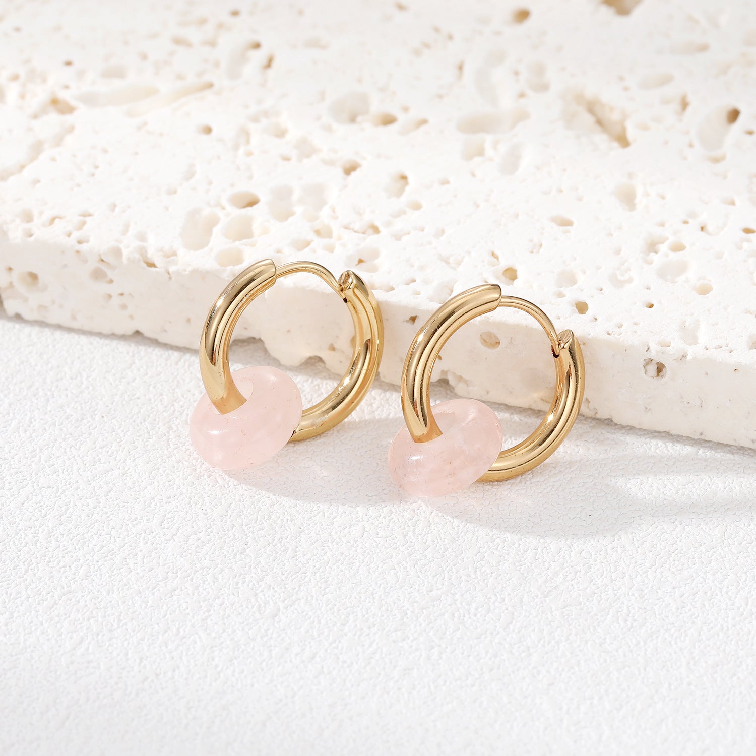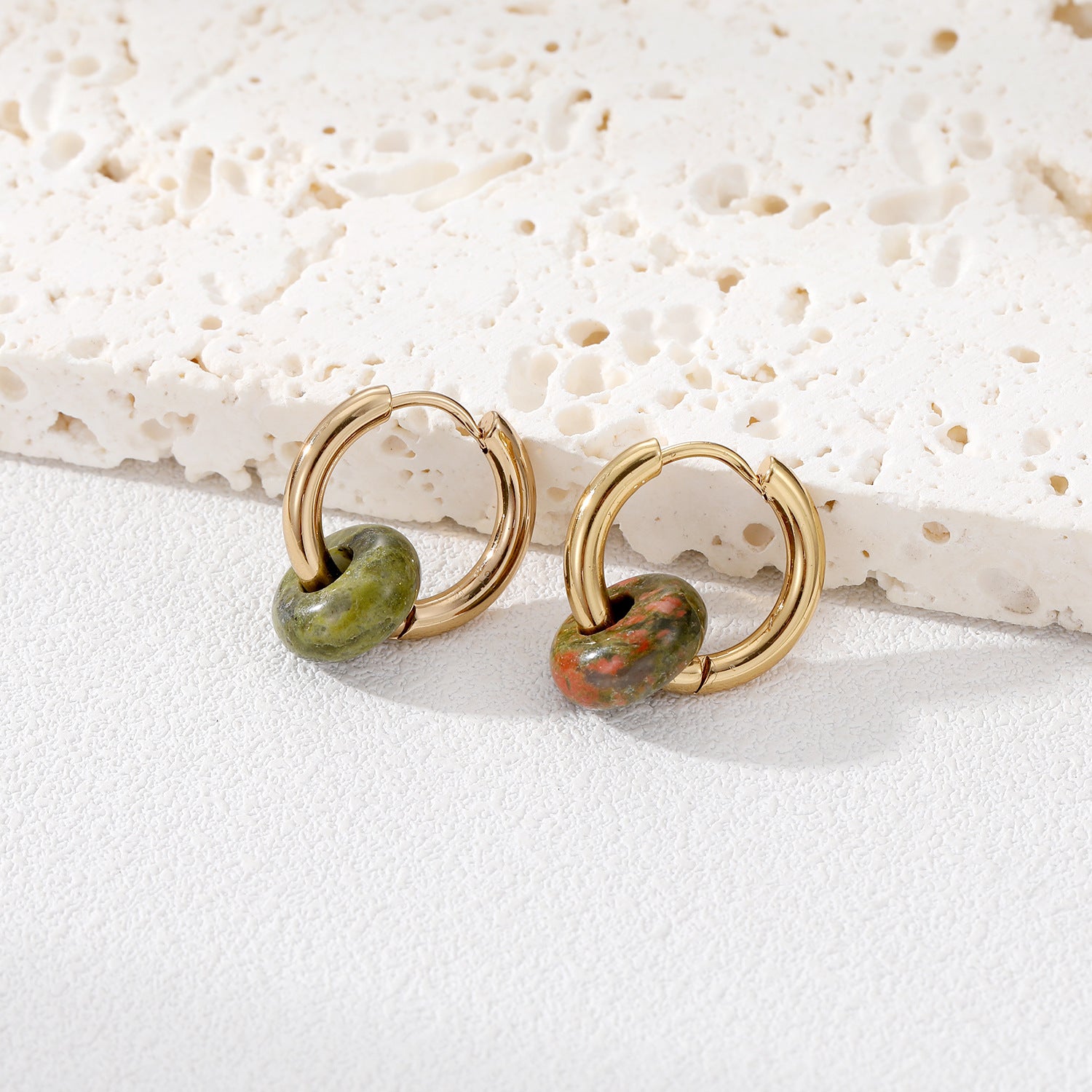 Fashion Vintage Textured Natural Stone Bead Stainless Steel Hoop Earrings