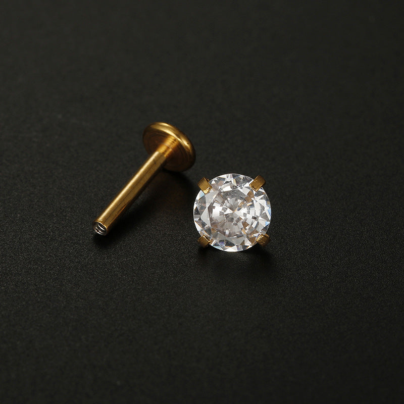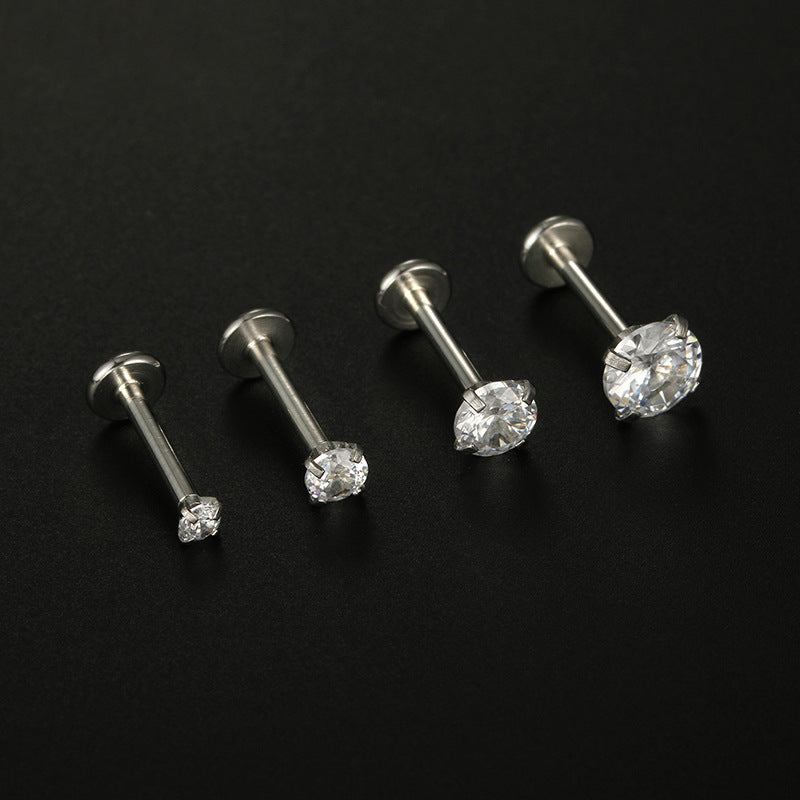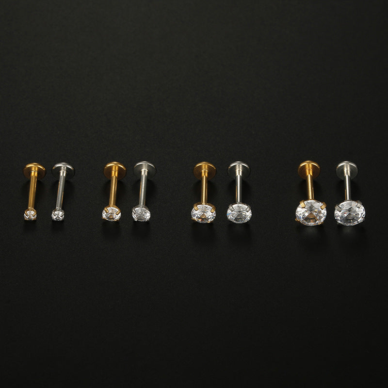 Fashion Minimalist Zircon Inlay Stainless Steel Lip and Ear Stud