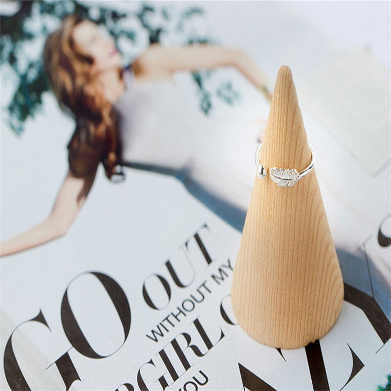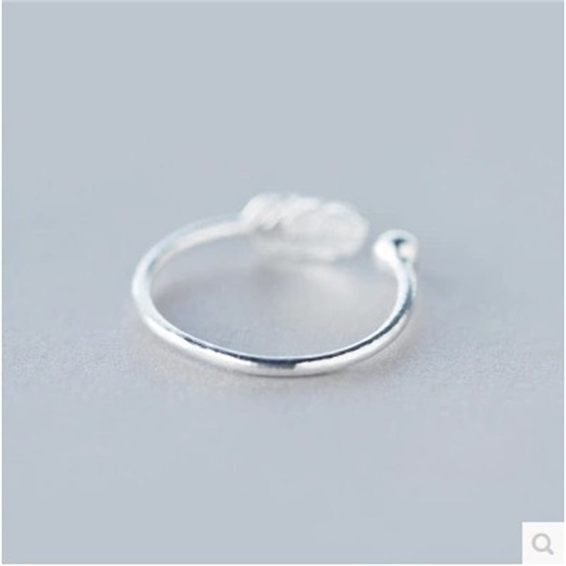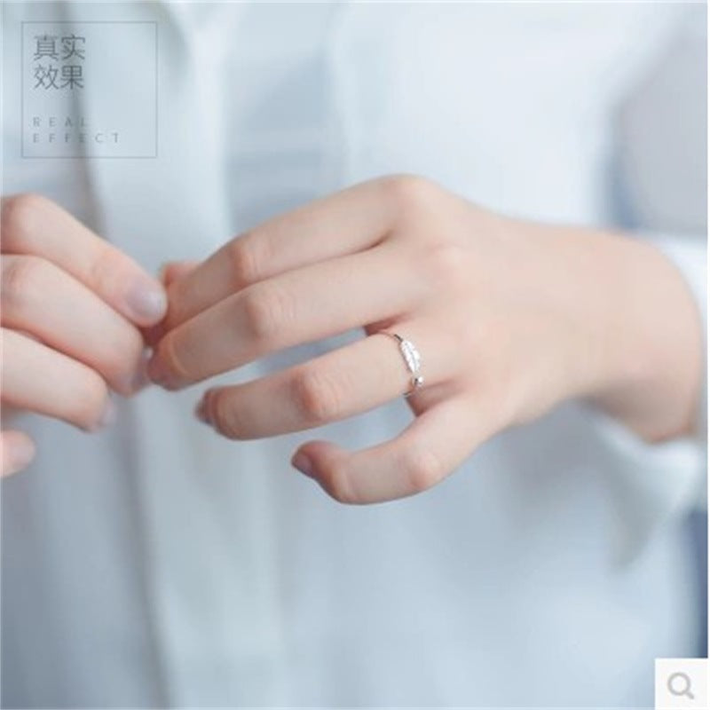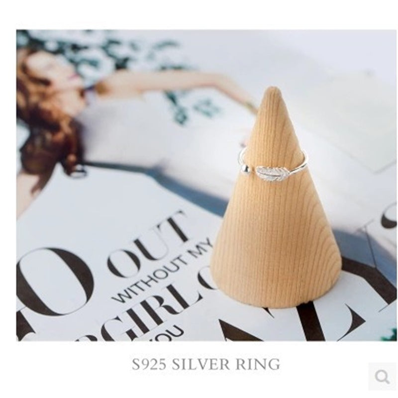 S925 Sterling Silver Feather Leaf Adjustable Ring for Women