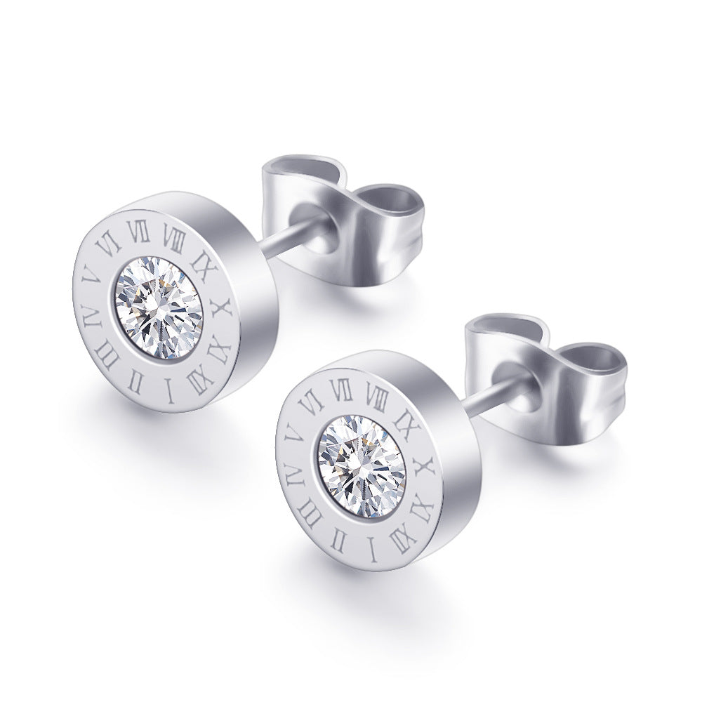 Fashion Geometric Roman Numeral Zircon Titanium Steel Stud Earrings in Rose Gold