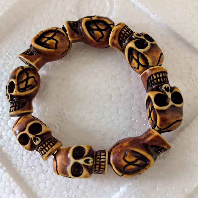 Skull Alloy Unisex Bracelet with Yak Bone Design