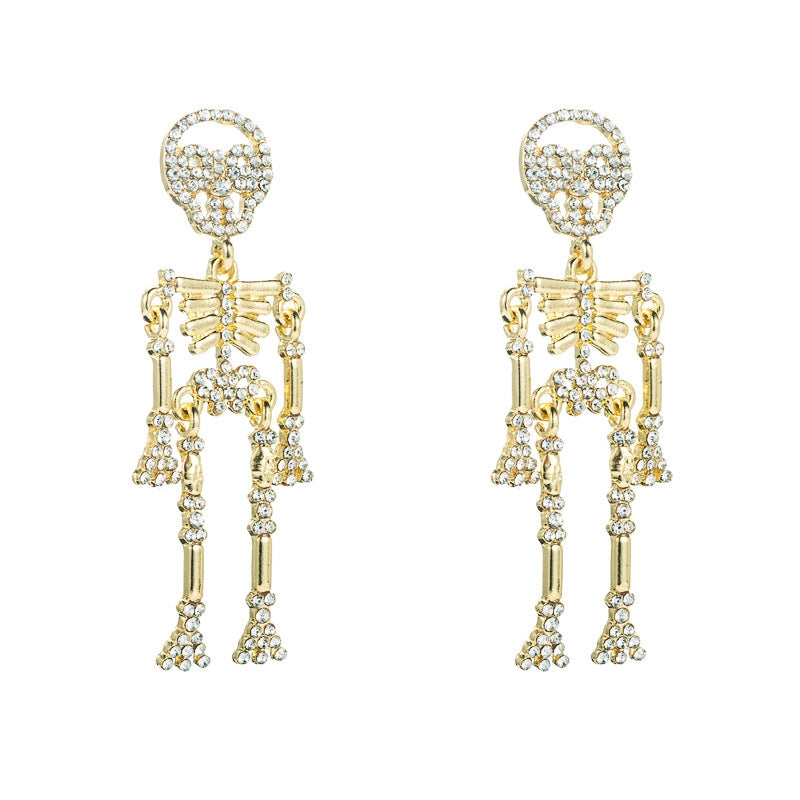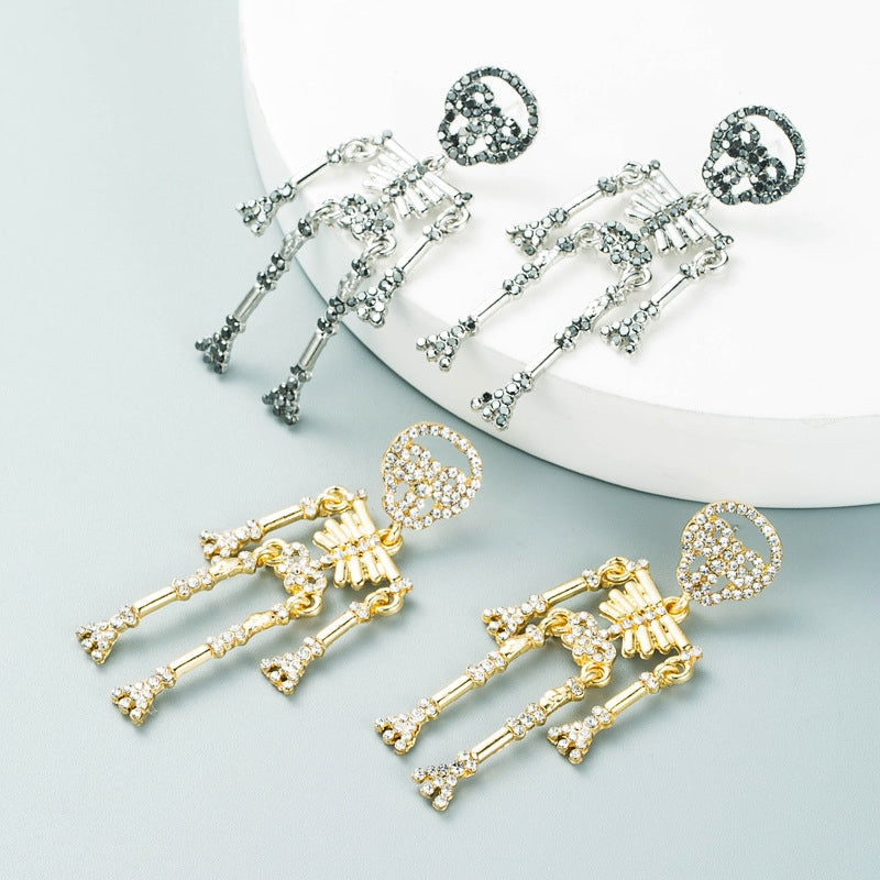 Fashion Skull Skeleton Alloy Gemstone Earrings with S925 Silver Needle