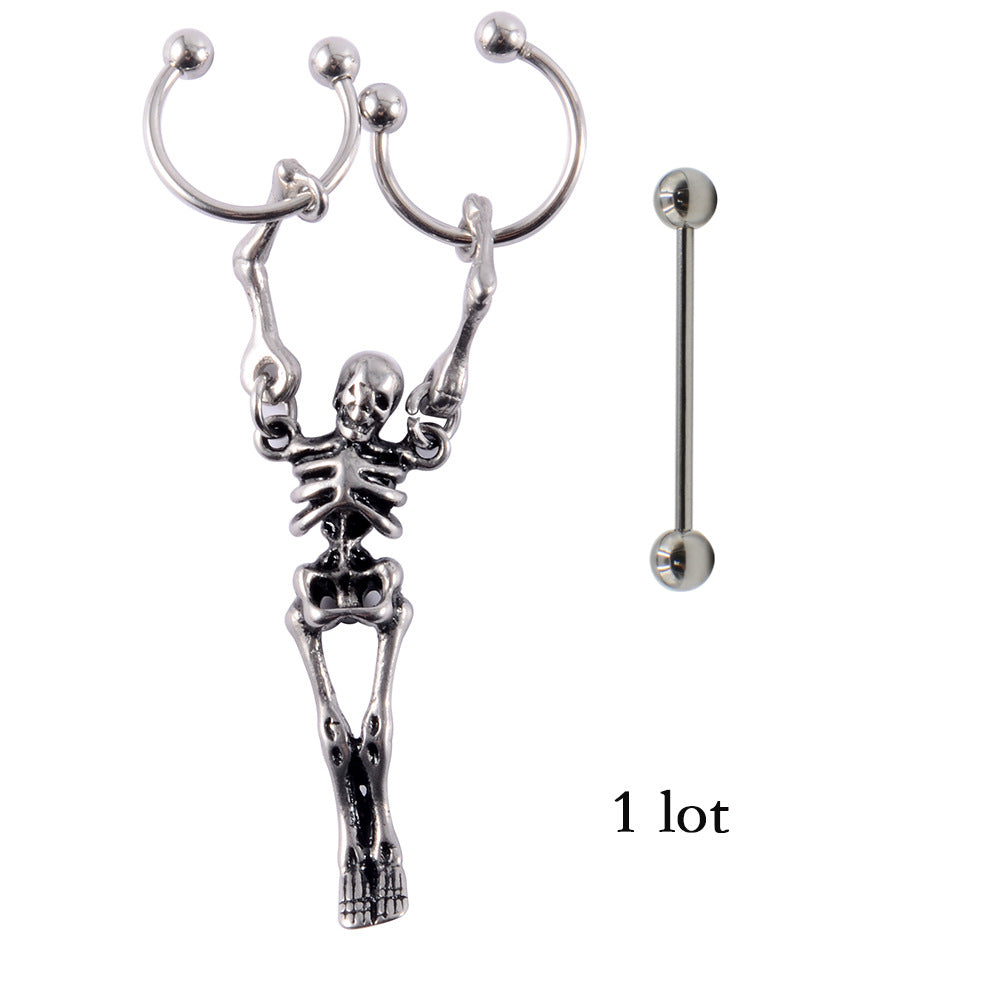 Skull Stainless Steel Plated Drop Earrings 16G Piercing Jewelry