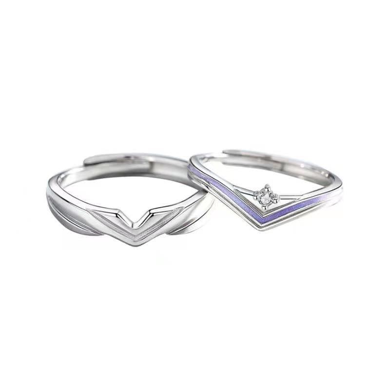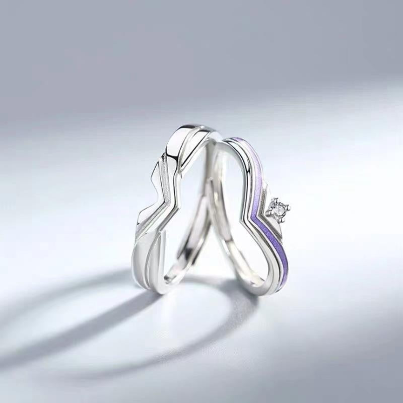 Elegant Copper Inlay Diamond Couple Rings - Minimalist Design