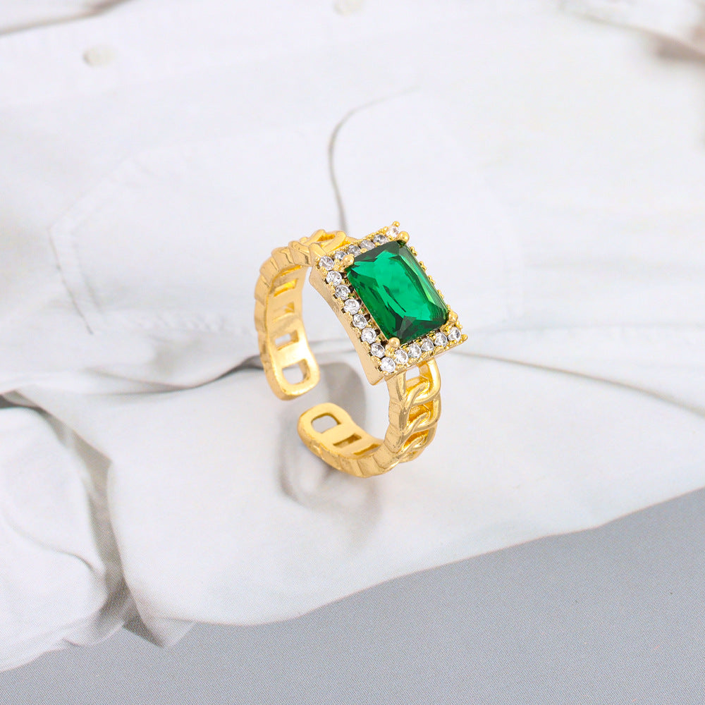 Fashion Geometric Square Emerald Open Titanium Steel Ring