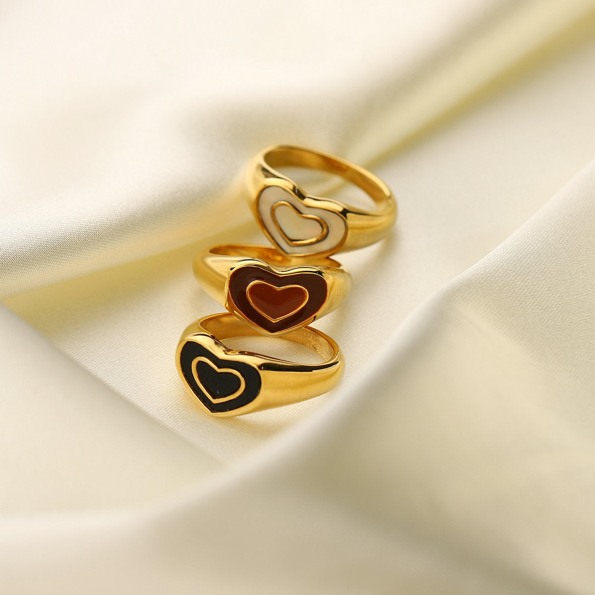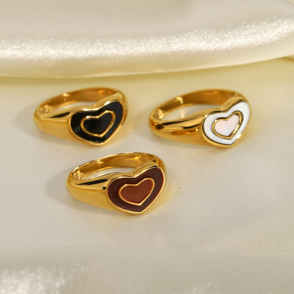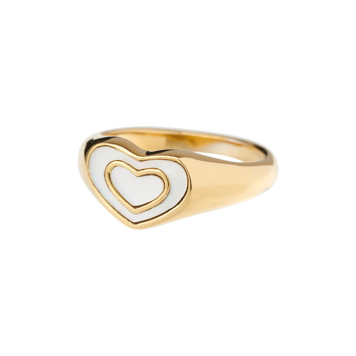 Fashion Retro Black and White Heart Stainless Steel Ring