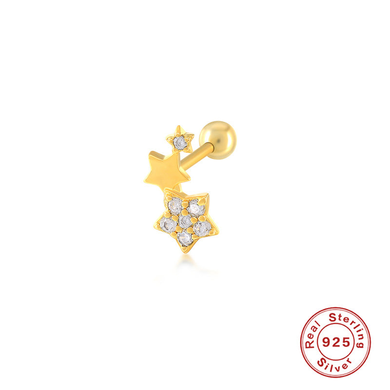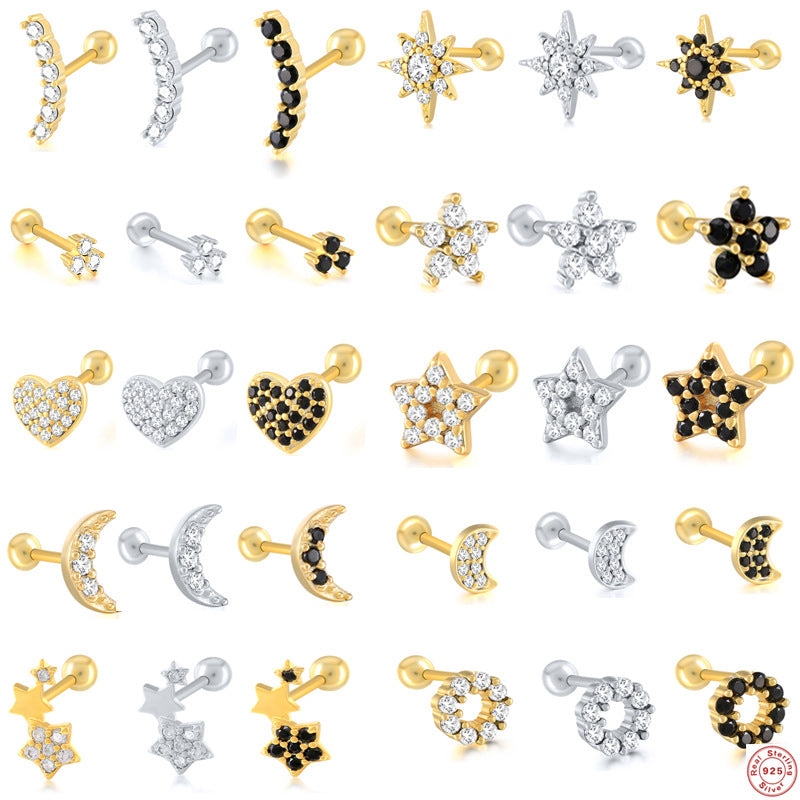 Sterling Silver Star Moon Heart Shaped Stud Earrings