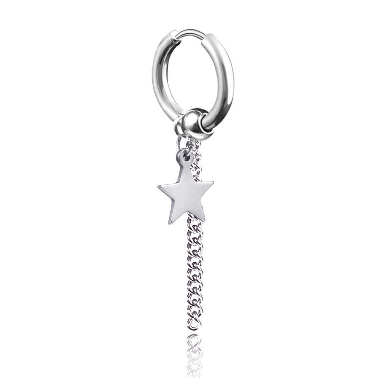 The steel five-pointed star is not available with chain earring fastenings in a single piece
