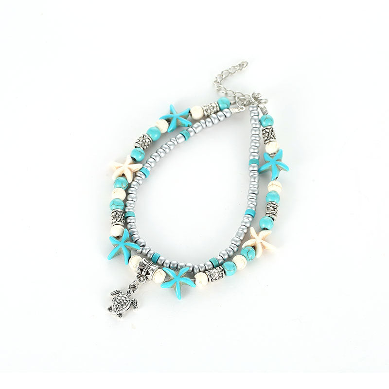 Fashion Starfish Pearl Conch and Turtle Pendant Anklet - Handmade Retro Wave Beach Foot Jewelry