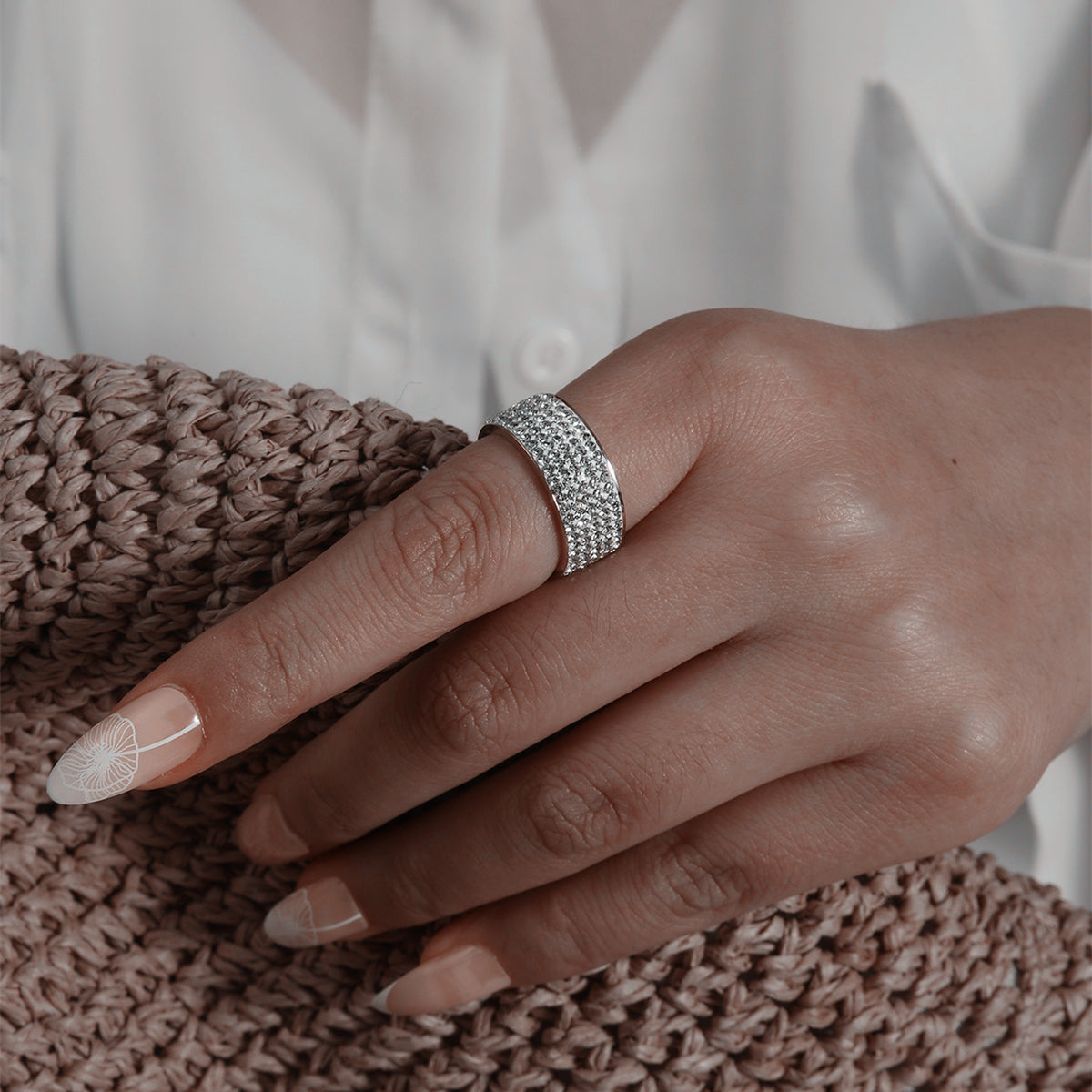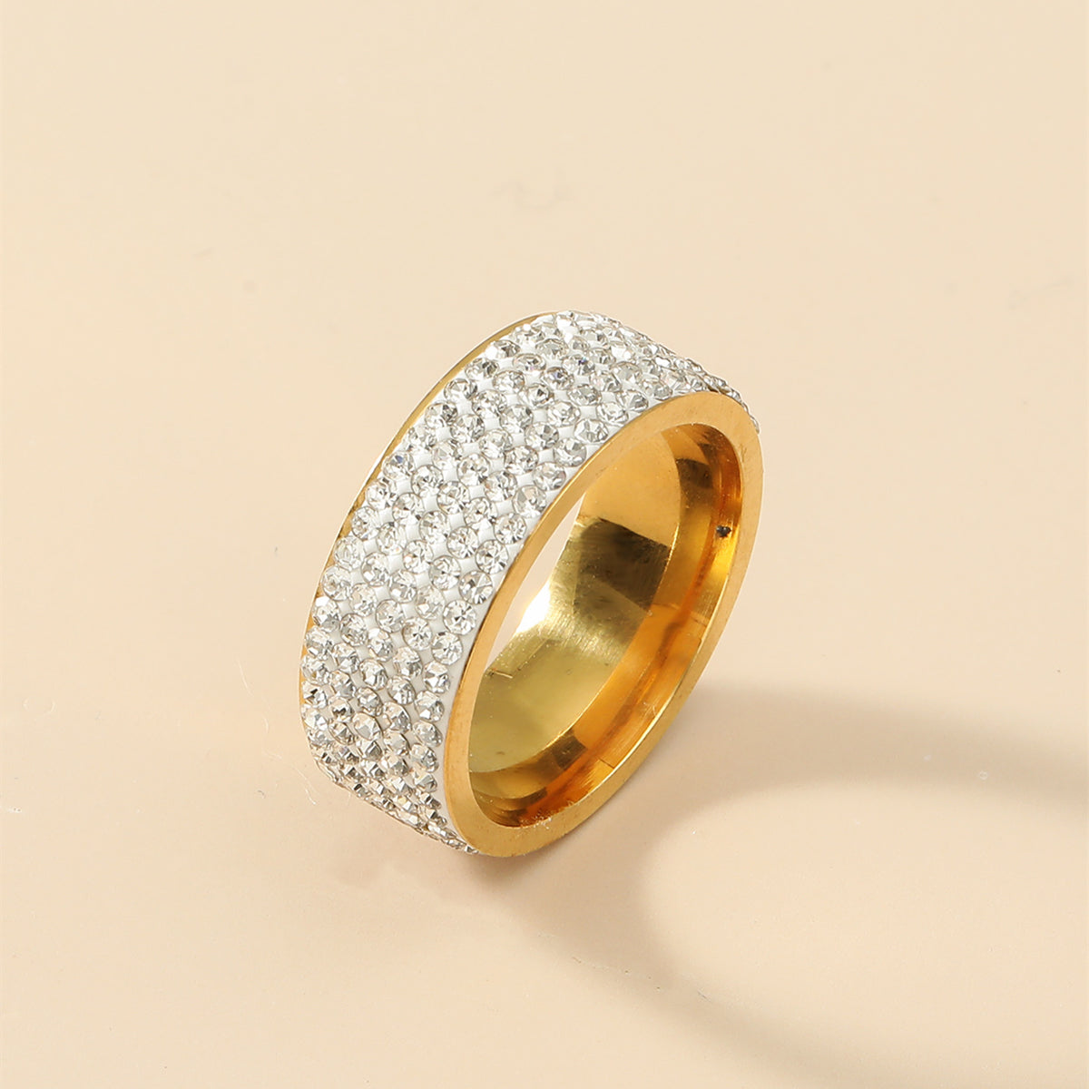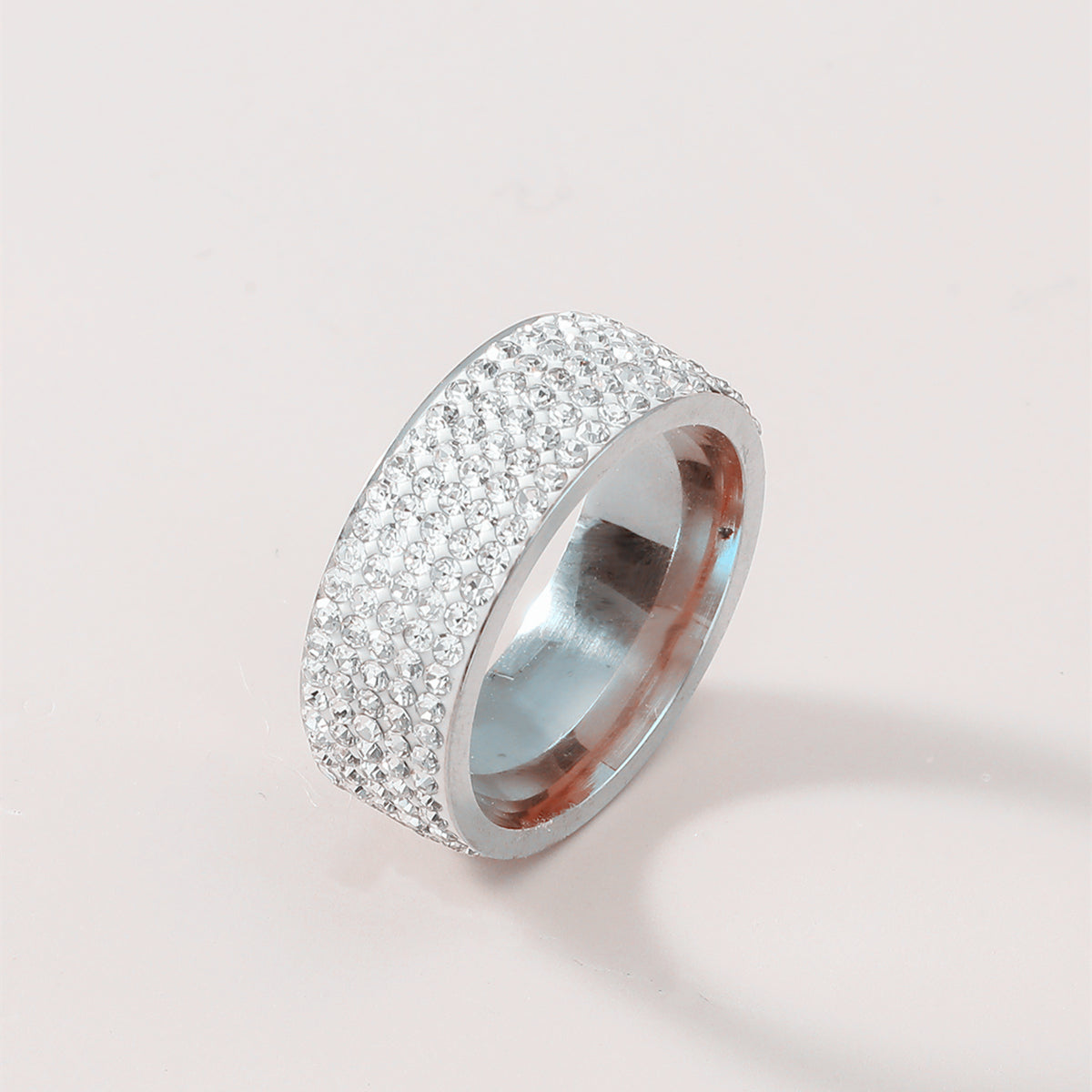 Fashion Titanium Steel Geometric Diamond Men's Ring 8mm Wide