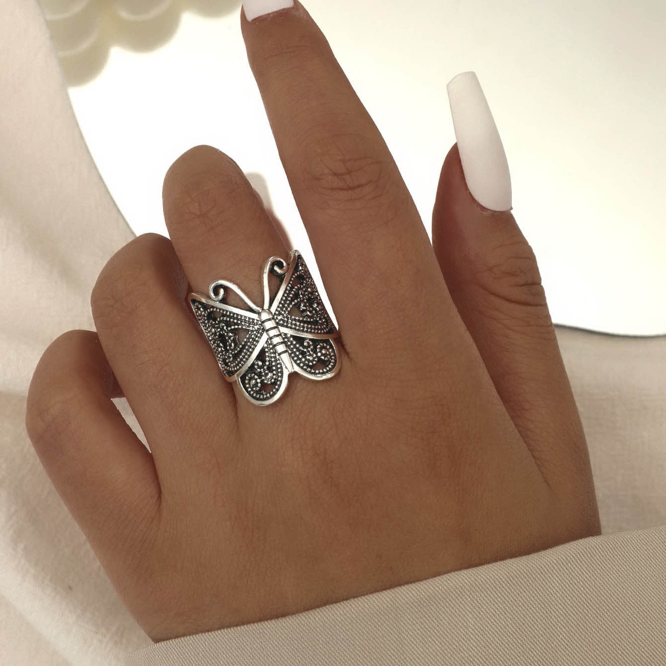 Vintage Geometric Cutout Butterfly Alloy Ring