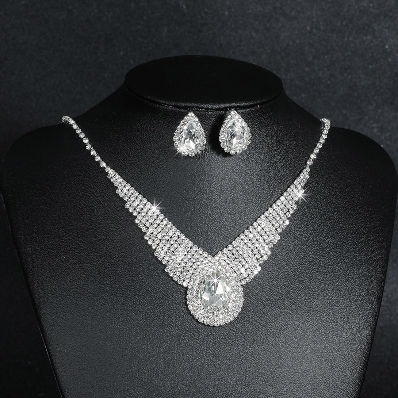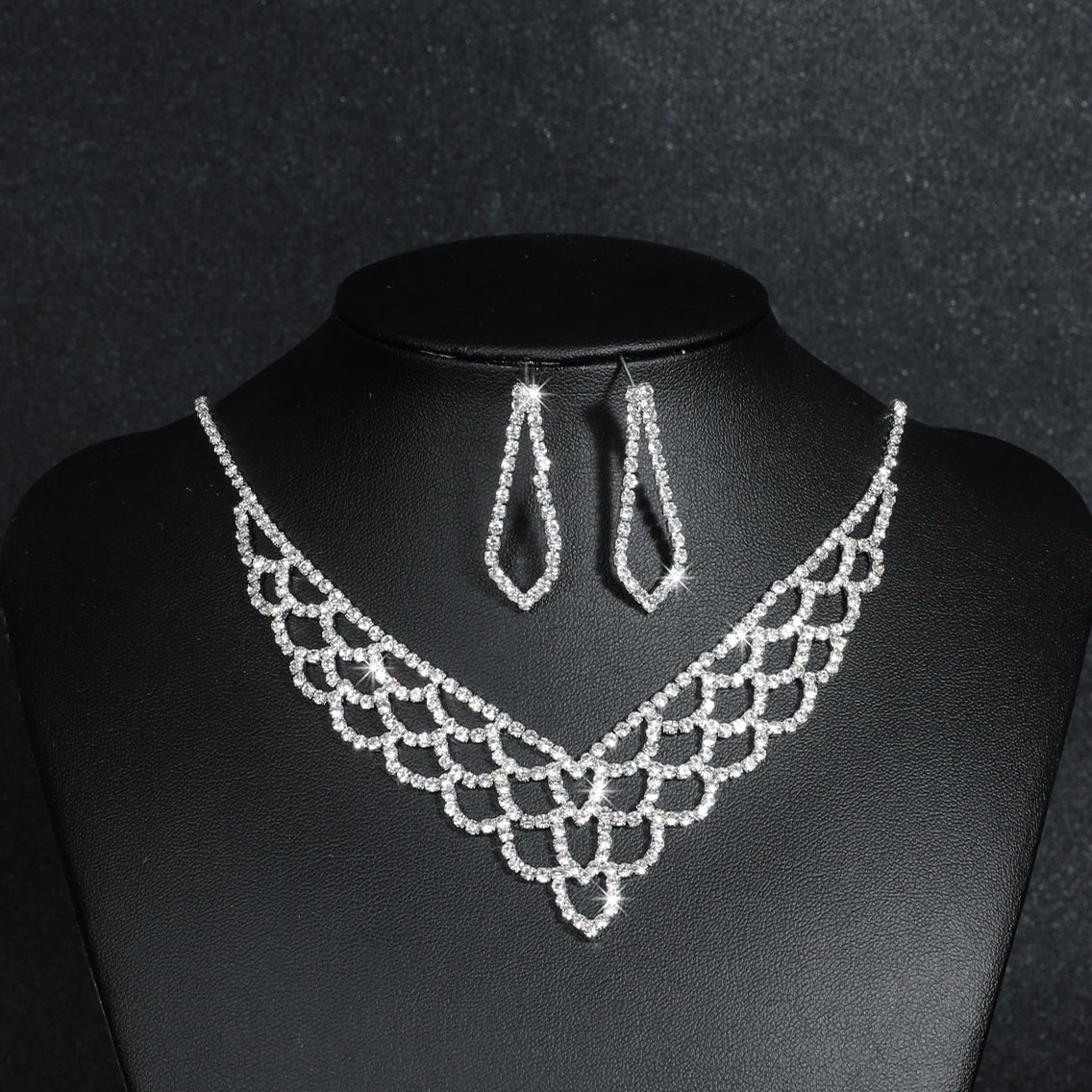 Elegant Crystal Rhinestone Necklace and Earring Set