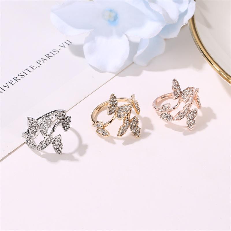 Elegant Butterfly Adjustable Open Ring with Micro Pave Copper Design