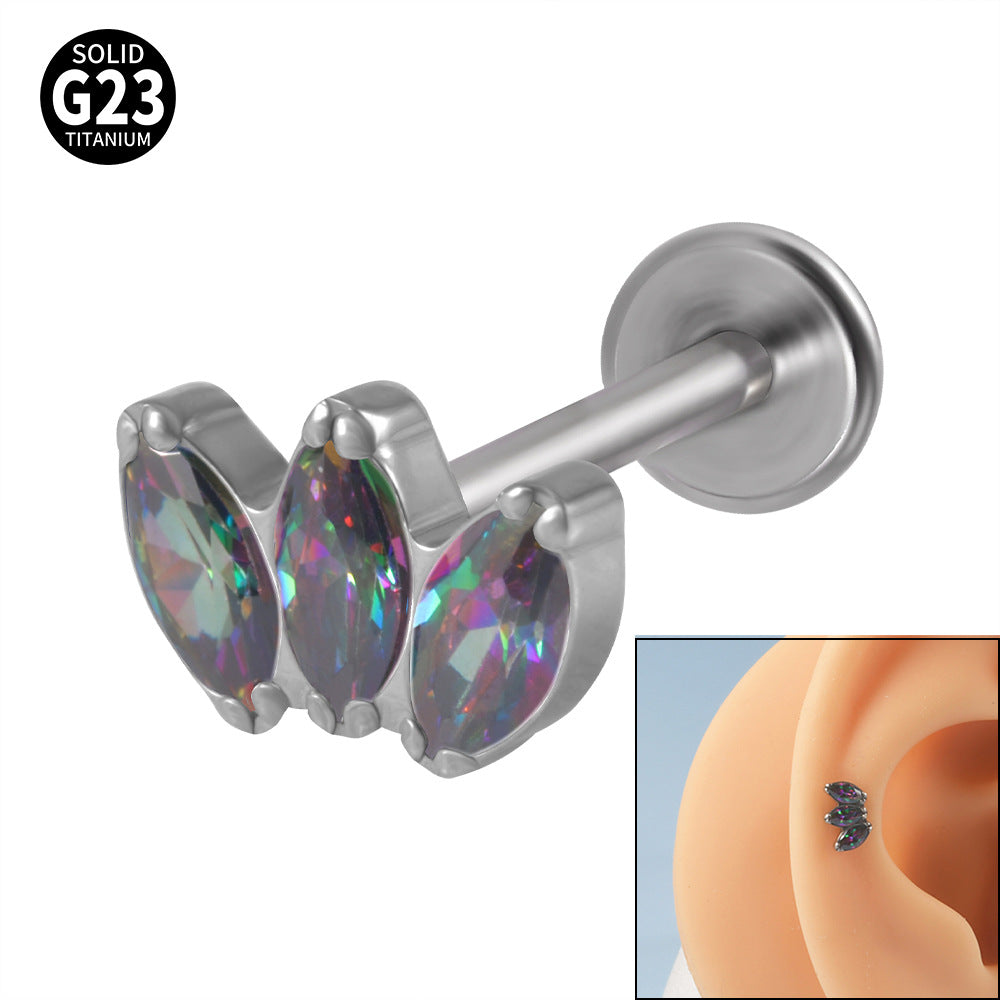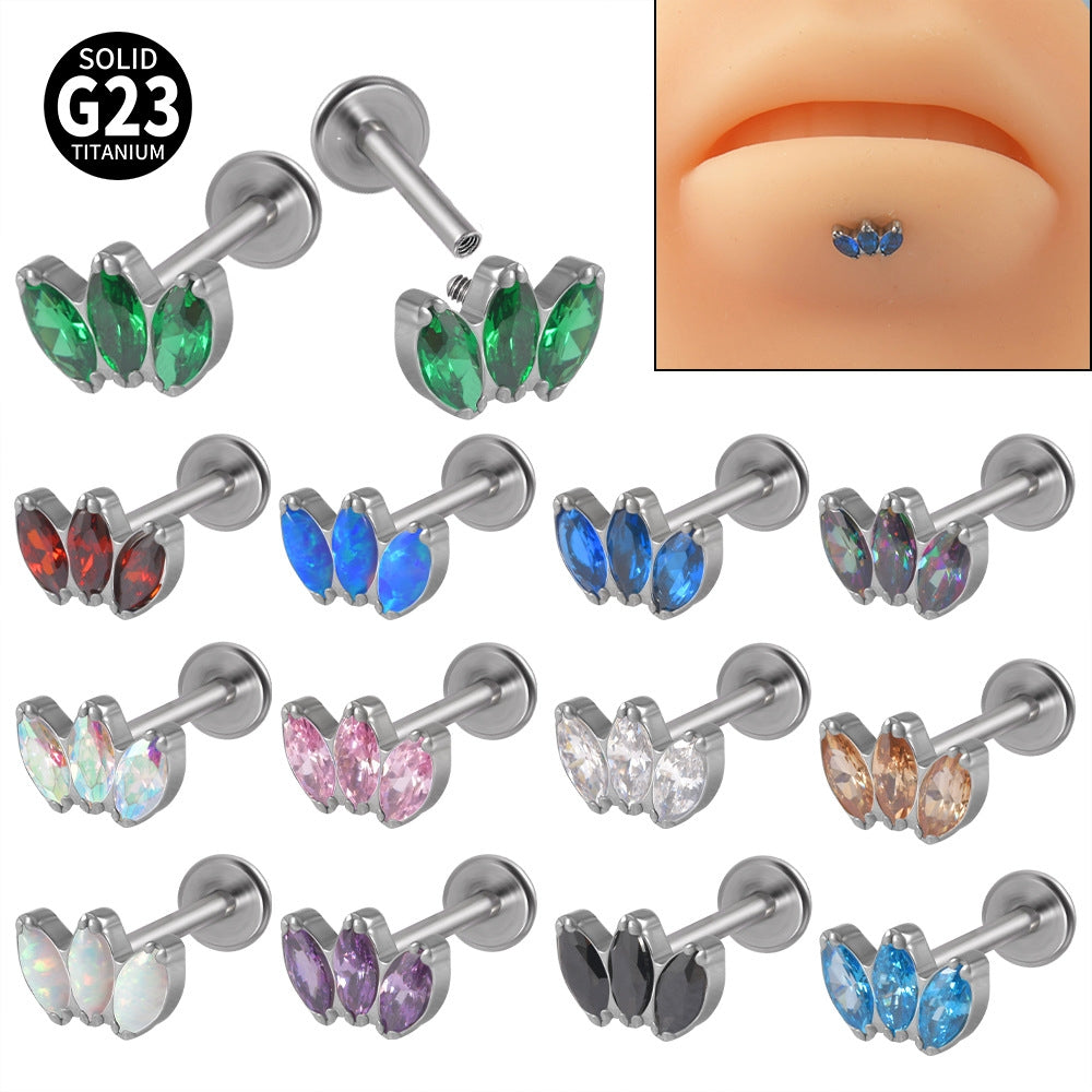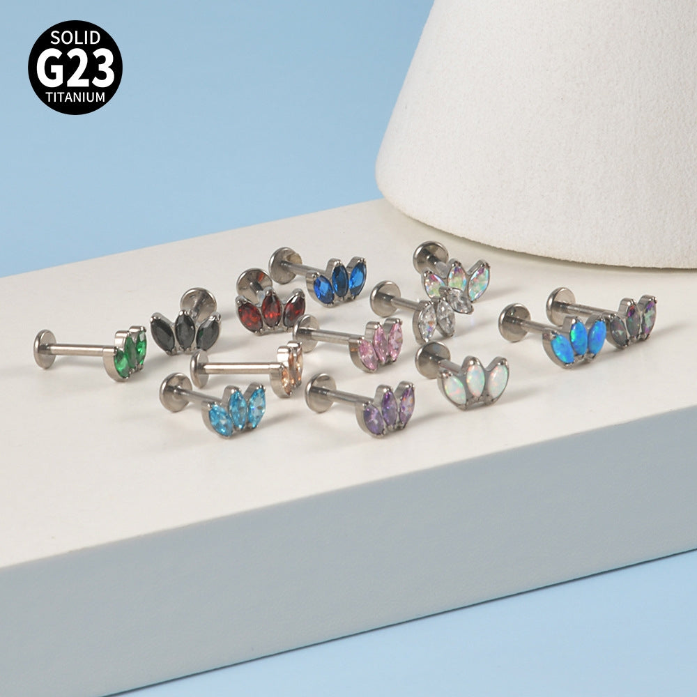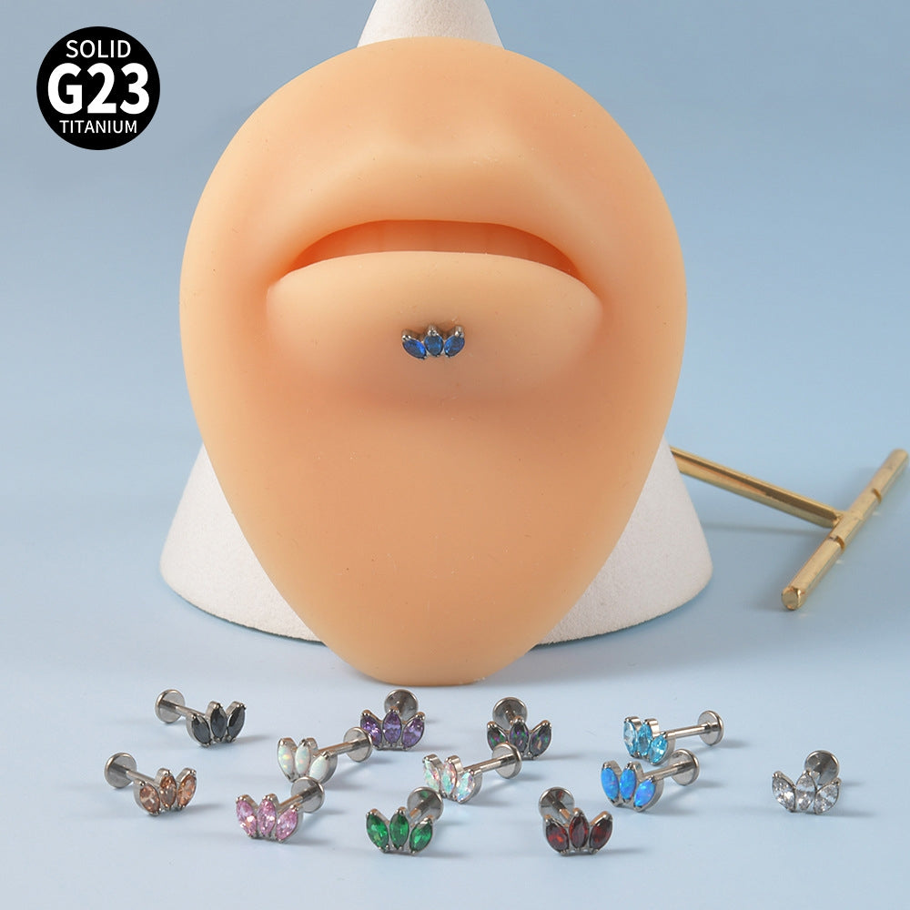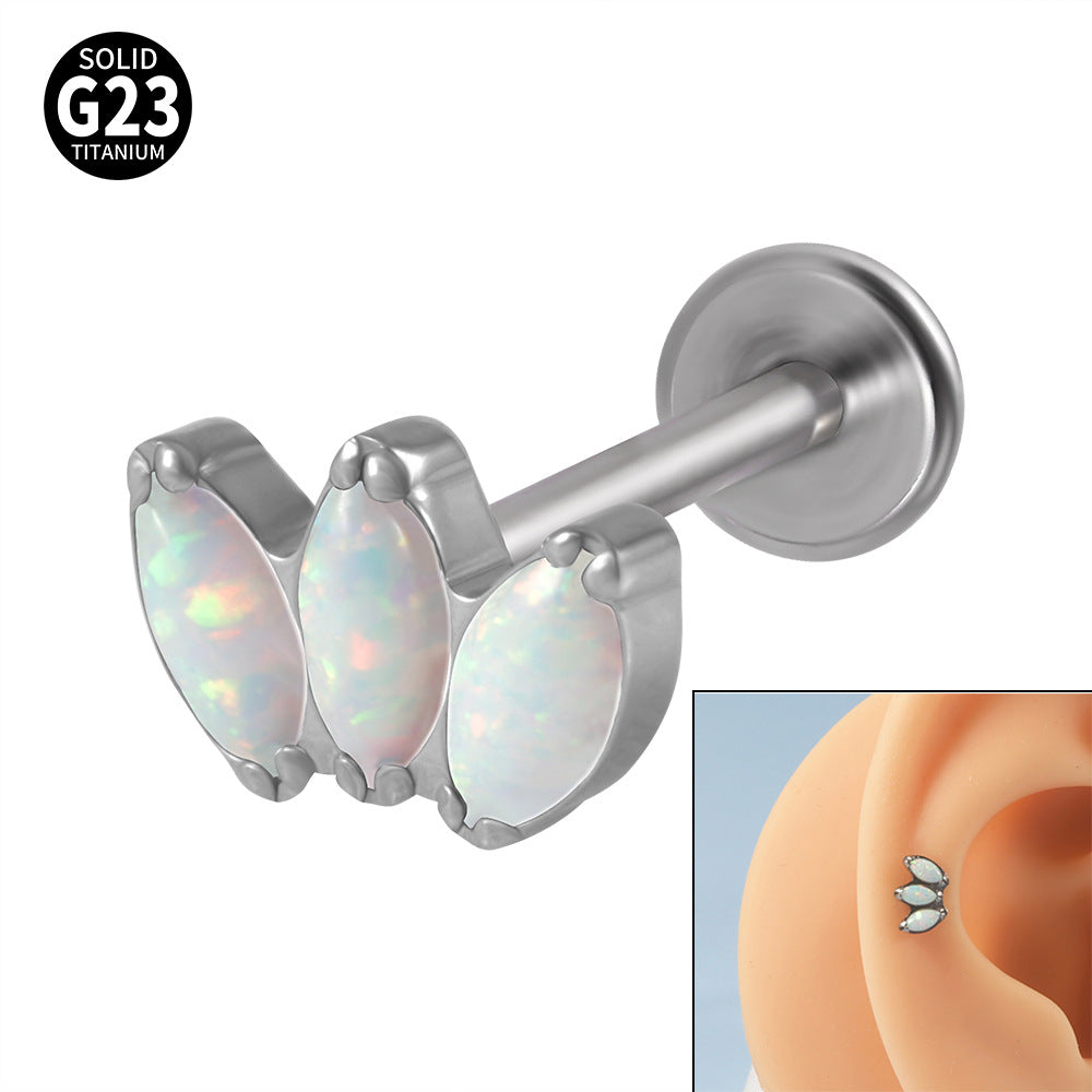 G23 Titanium Opal Lip and Ear Stud Set with Zircon Inlay