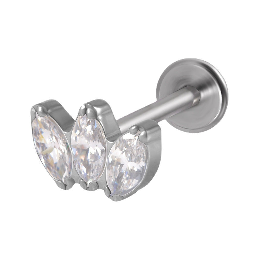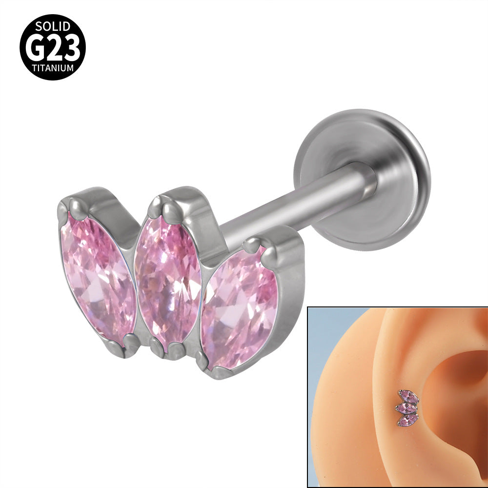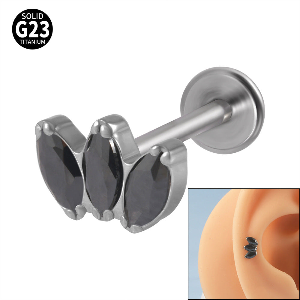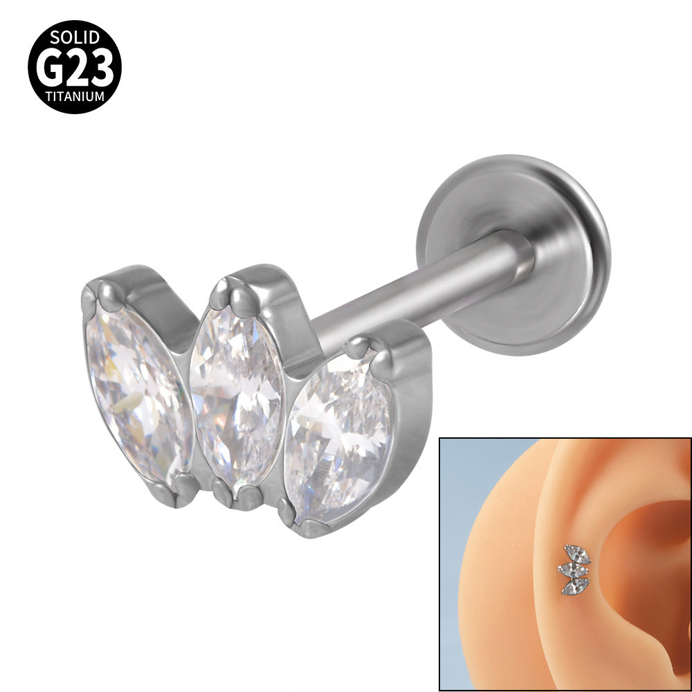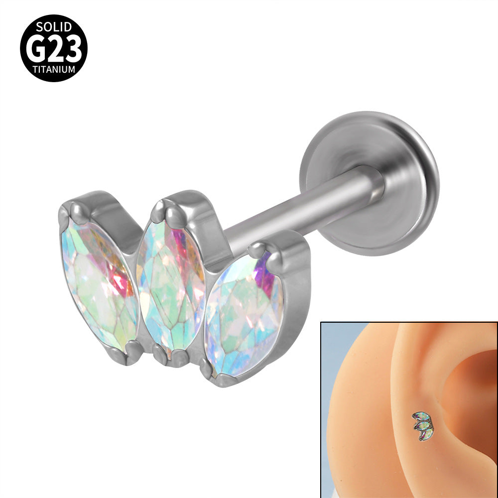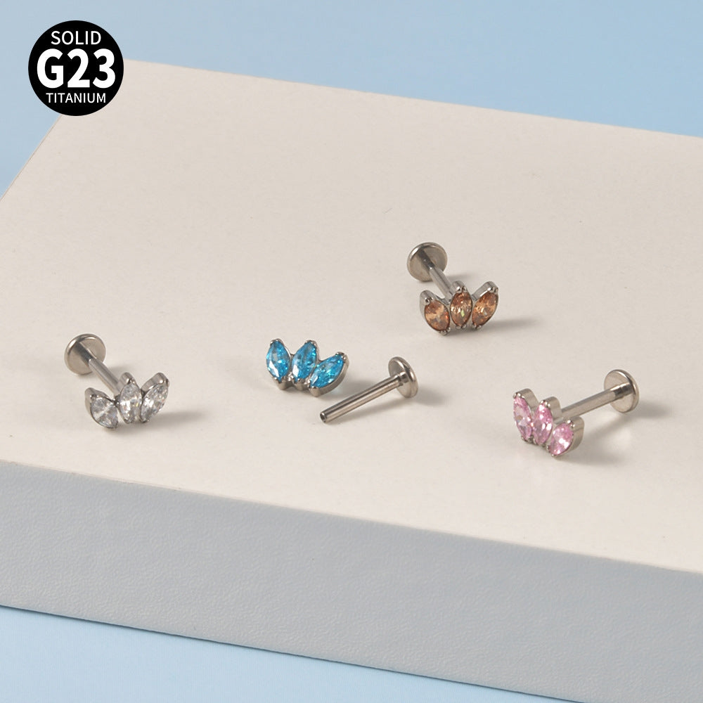 G23 Titanium Opal Lip and Ear Stud Set with Zircon Inlay