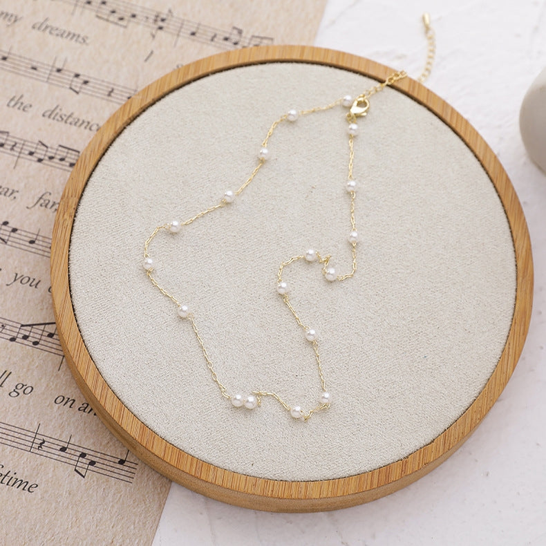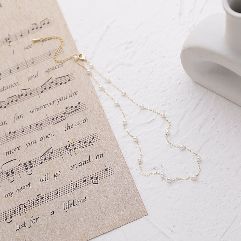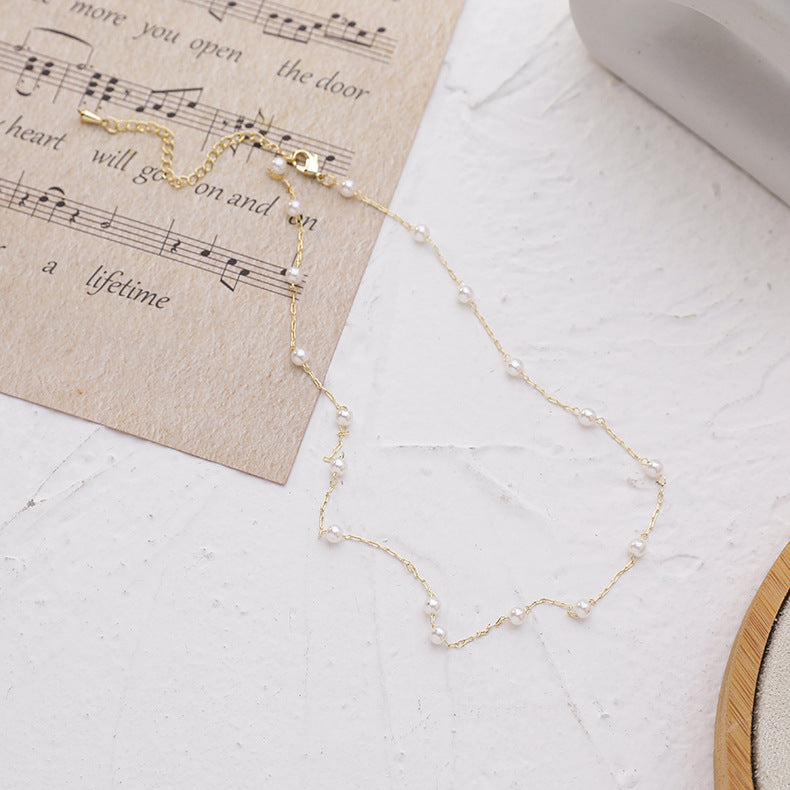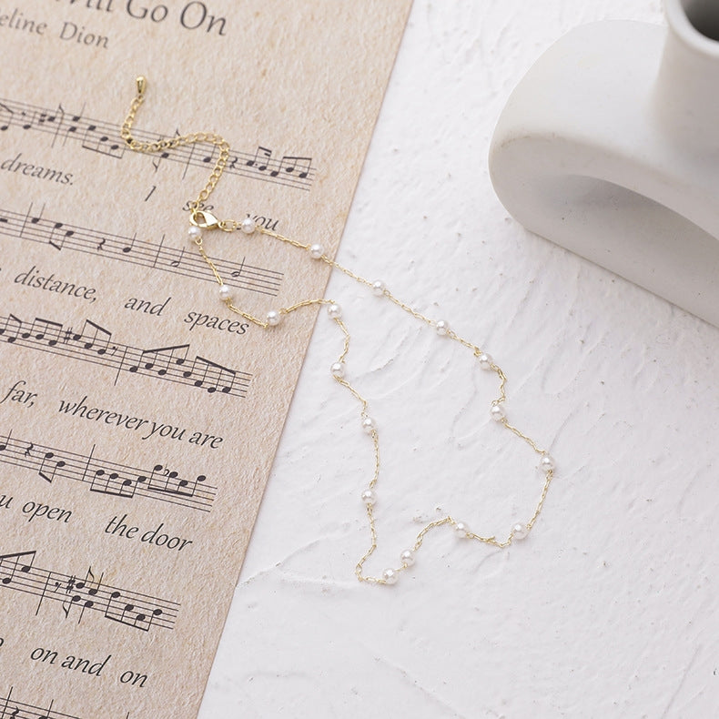 Geometric Alloy Plated Pearl Choker Necklace for Women