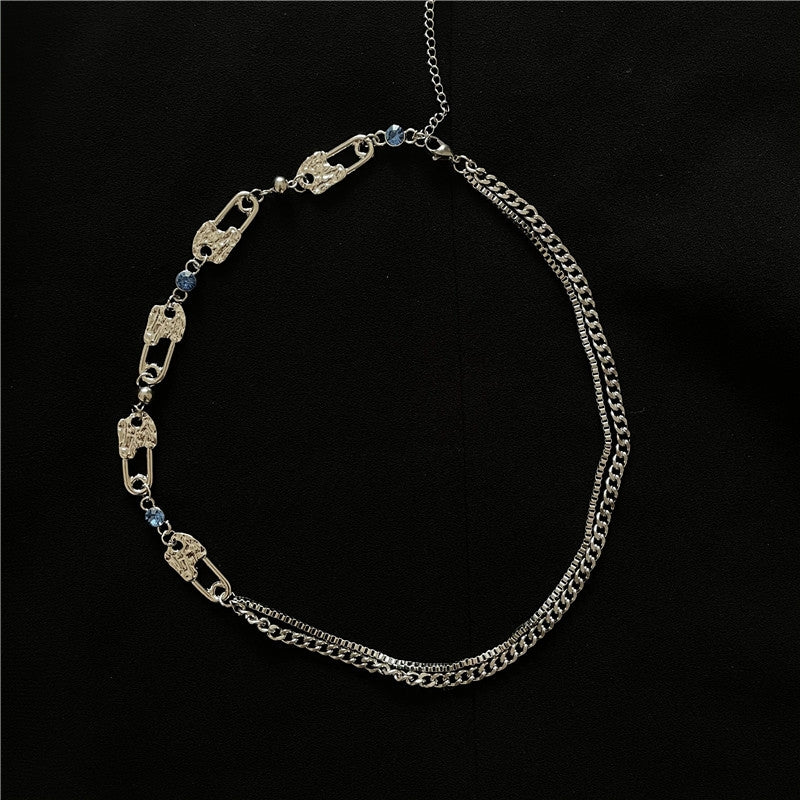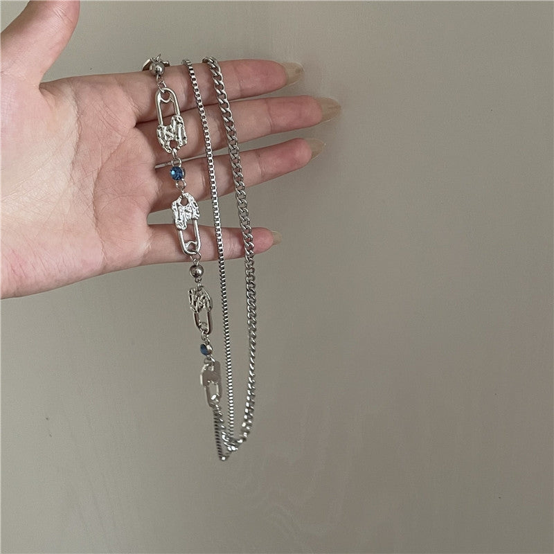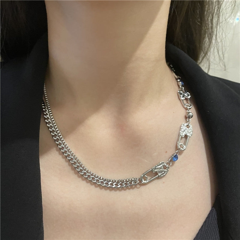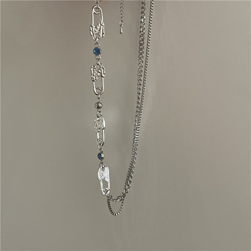 Geometric Blue Zirconia Silver Titanium Steel Necklace for Women