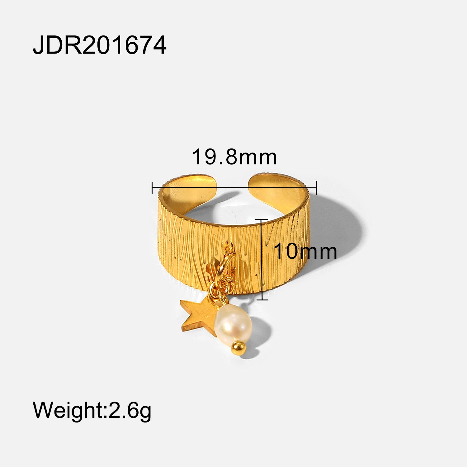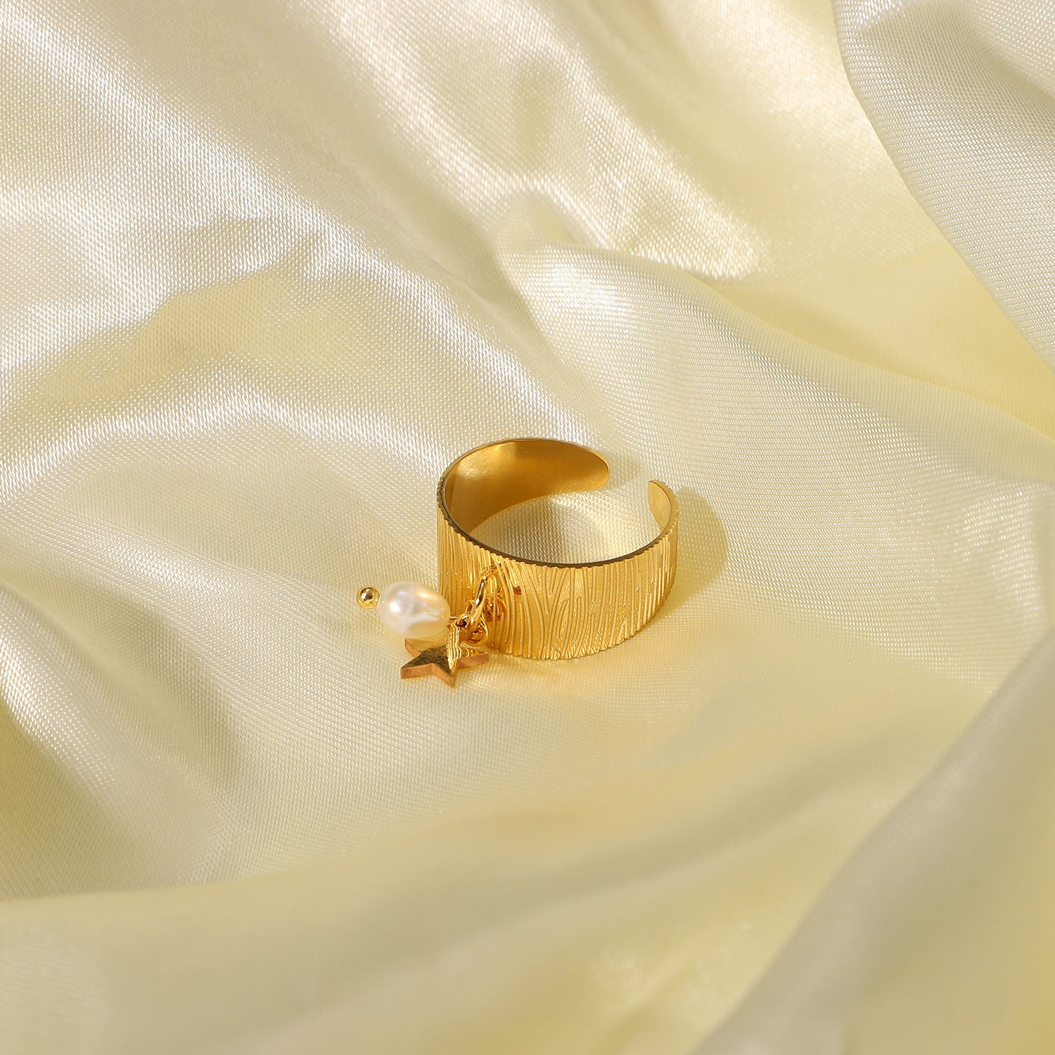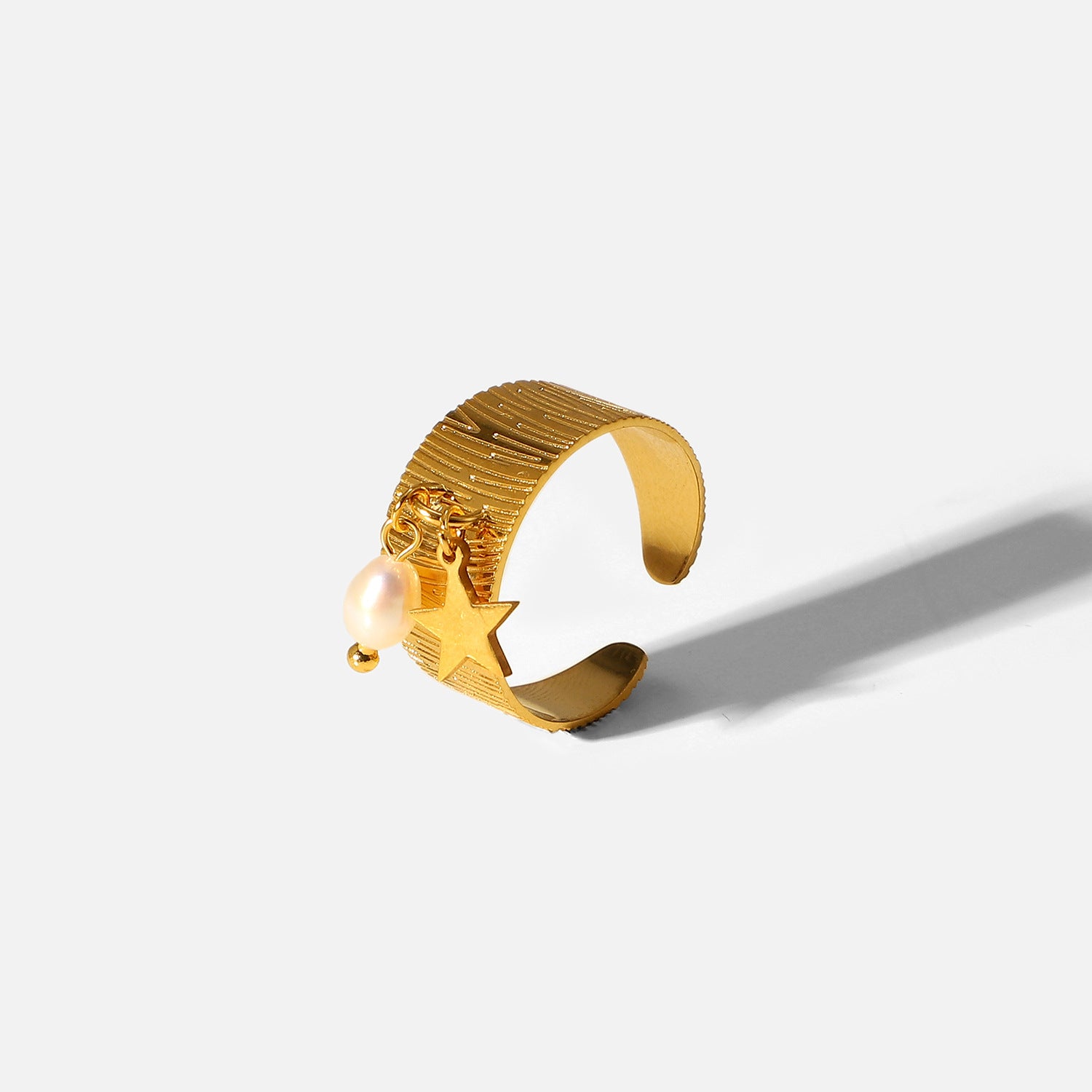 Geometric Star Pearl Pendant 18K Gold Stainless Steel Open Ring