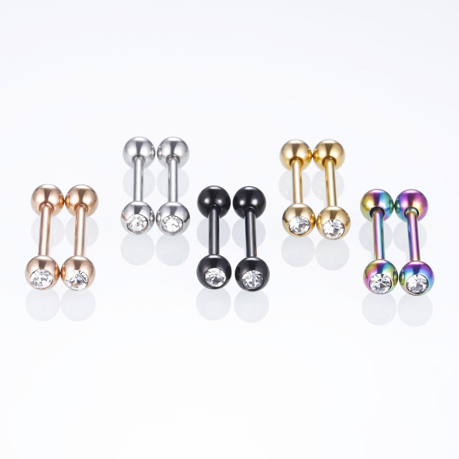Geometric Stainless Steel Zircon Tongue Stud and Double Diamond Stud Earrings