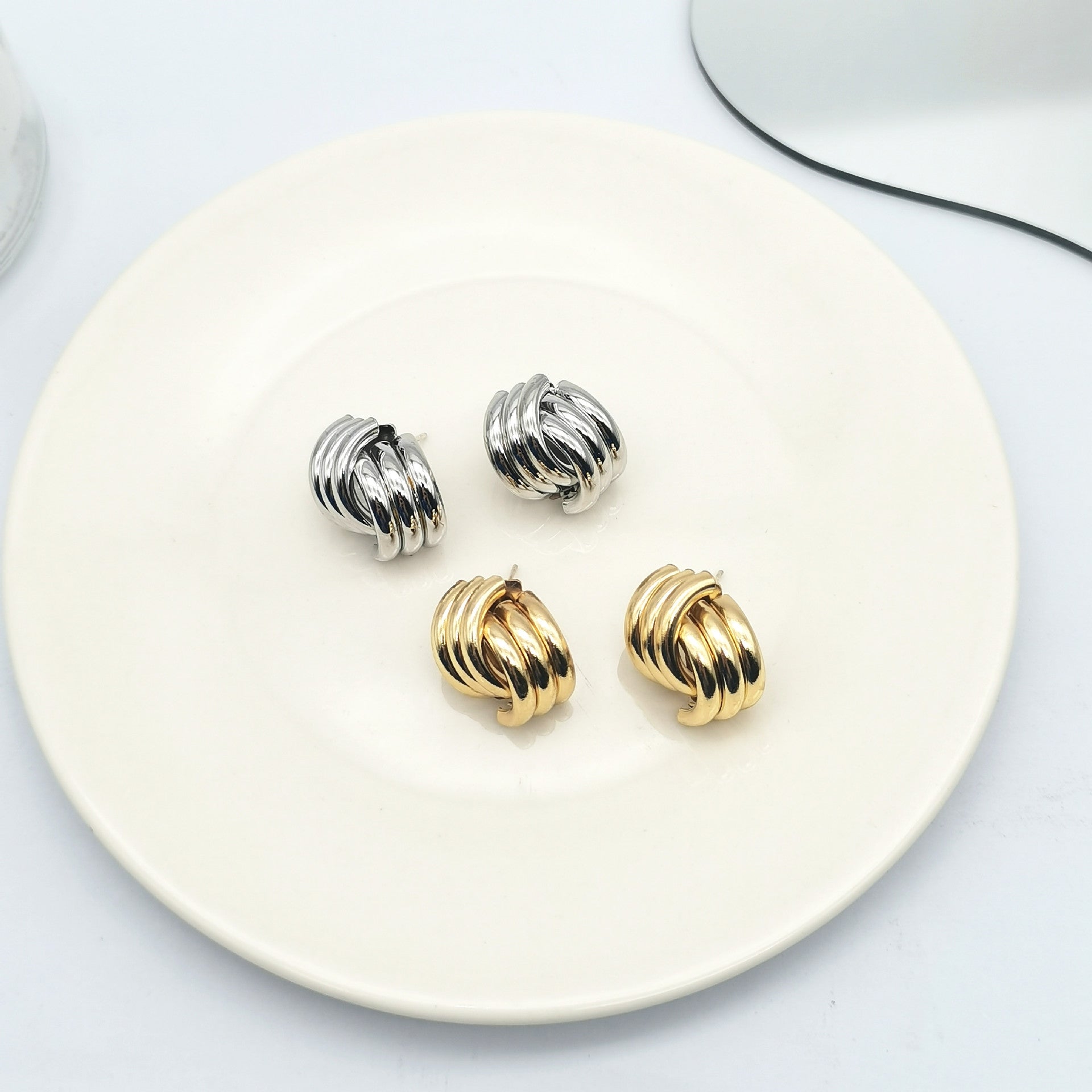 Geometric Stripe Alloy Plating Cross Metal Stud Earrings