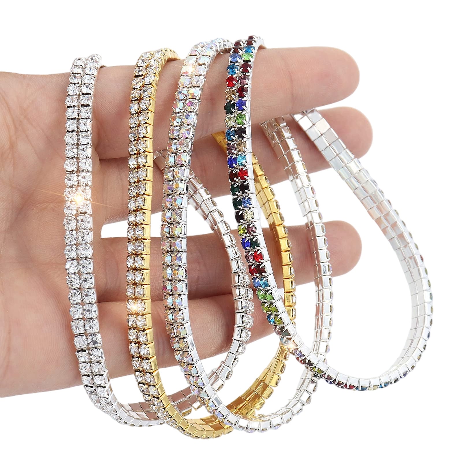 Geometric Zircon Rhinestone Stretch Bracelet Set for Women