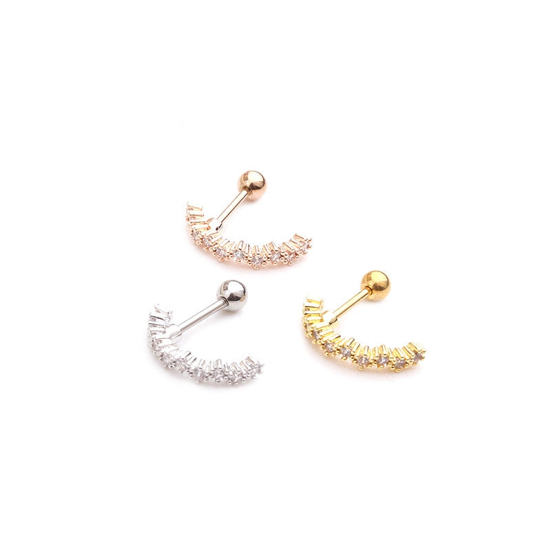 Geometric Zircon Stud Earrings Stainless Steel Copper Inlay Piercing Jewelry