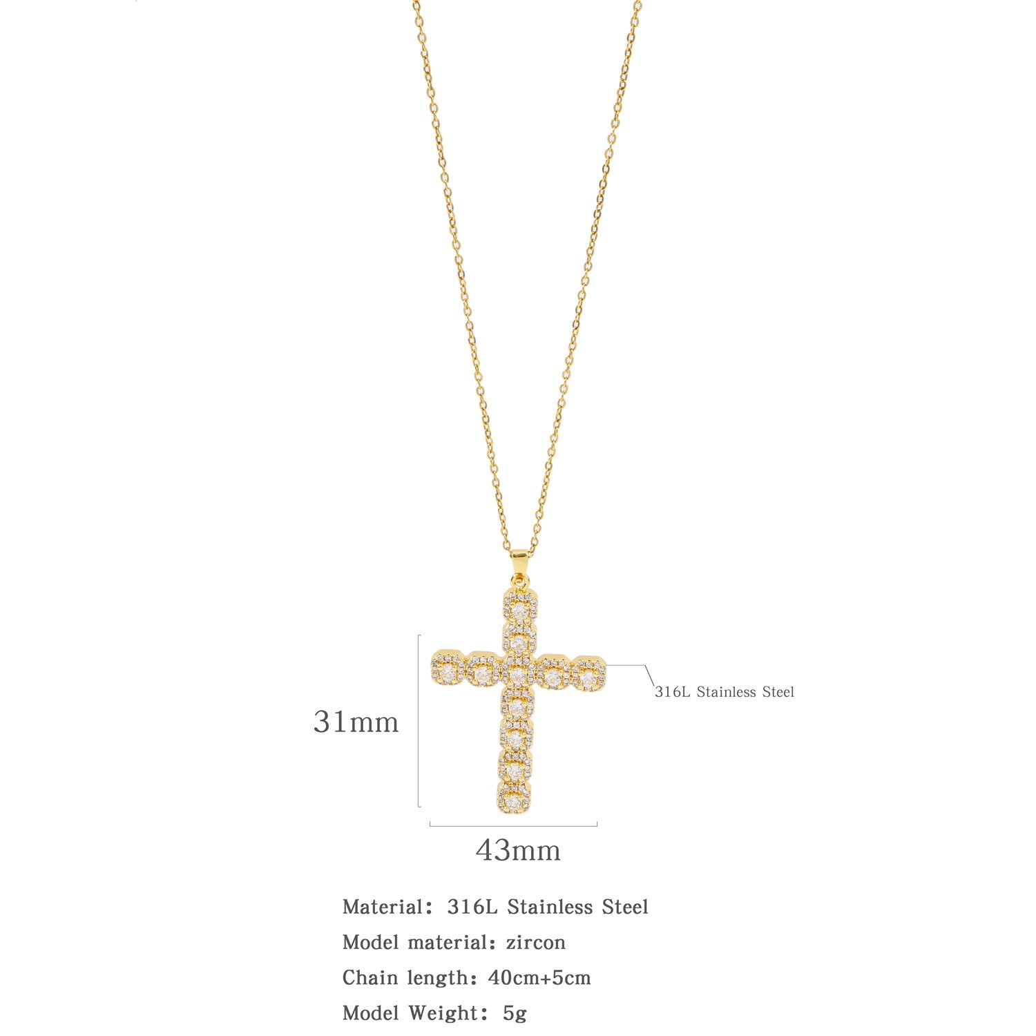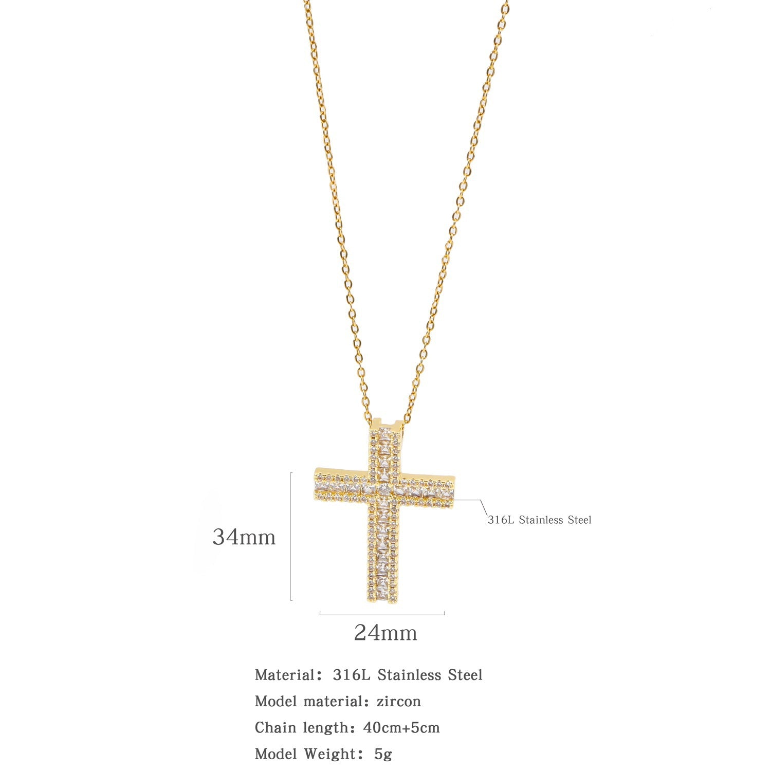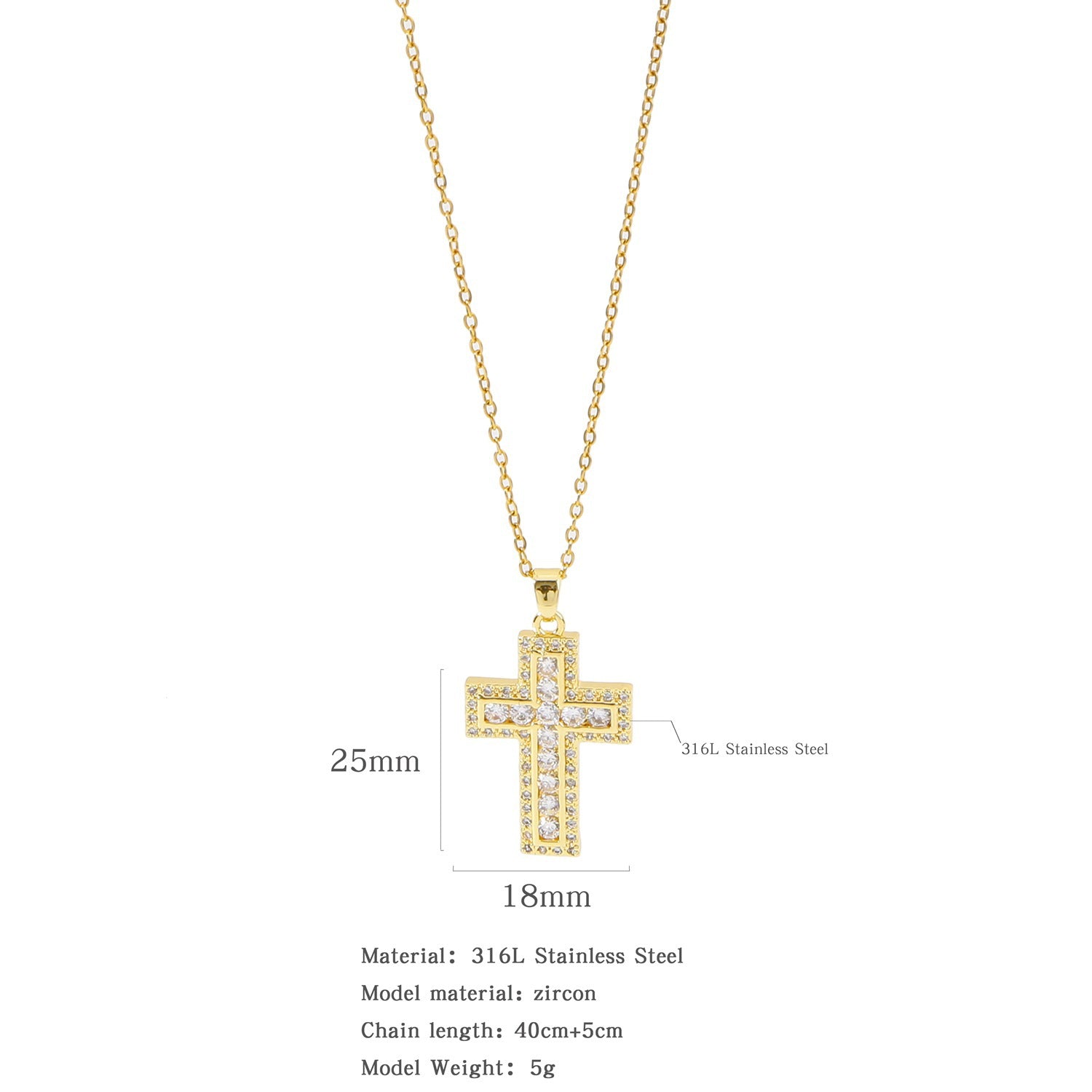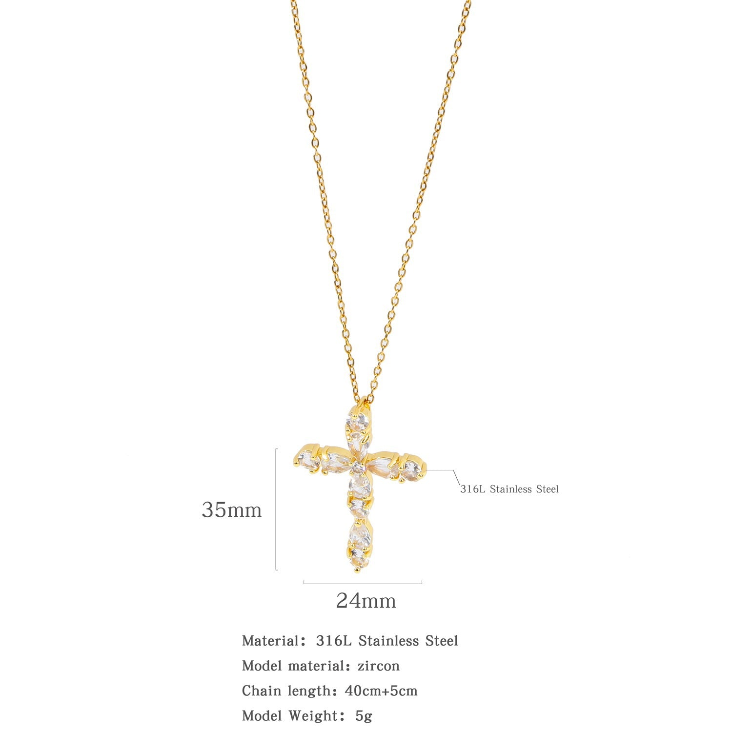 Glam Zircon Cross Pendant Necklace for Women in Copper Plated Stainless Steel