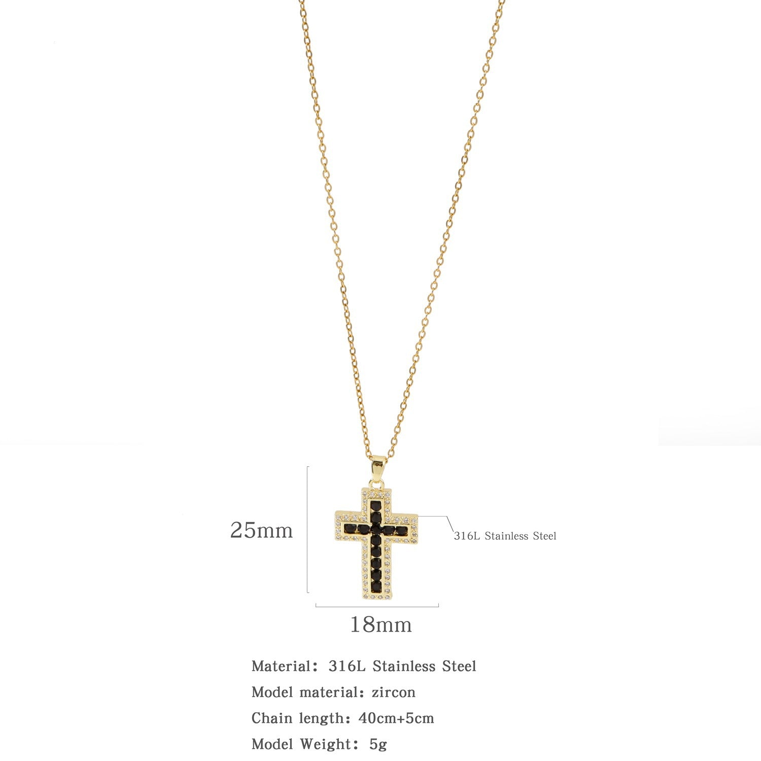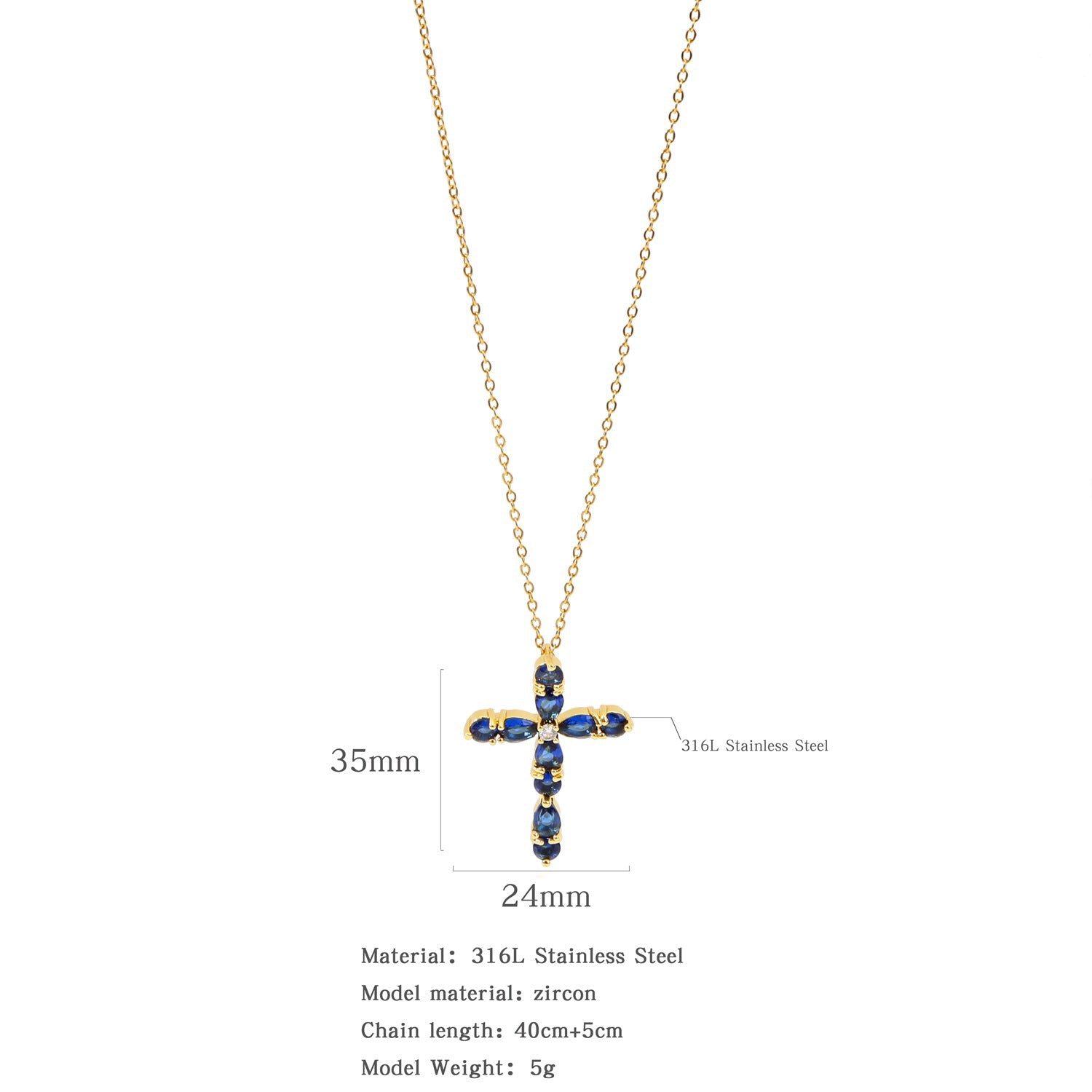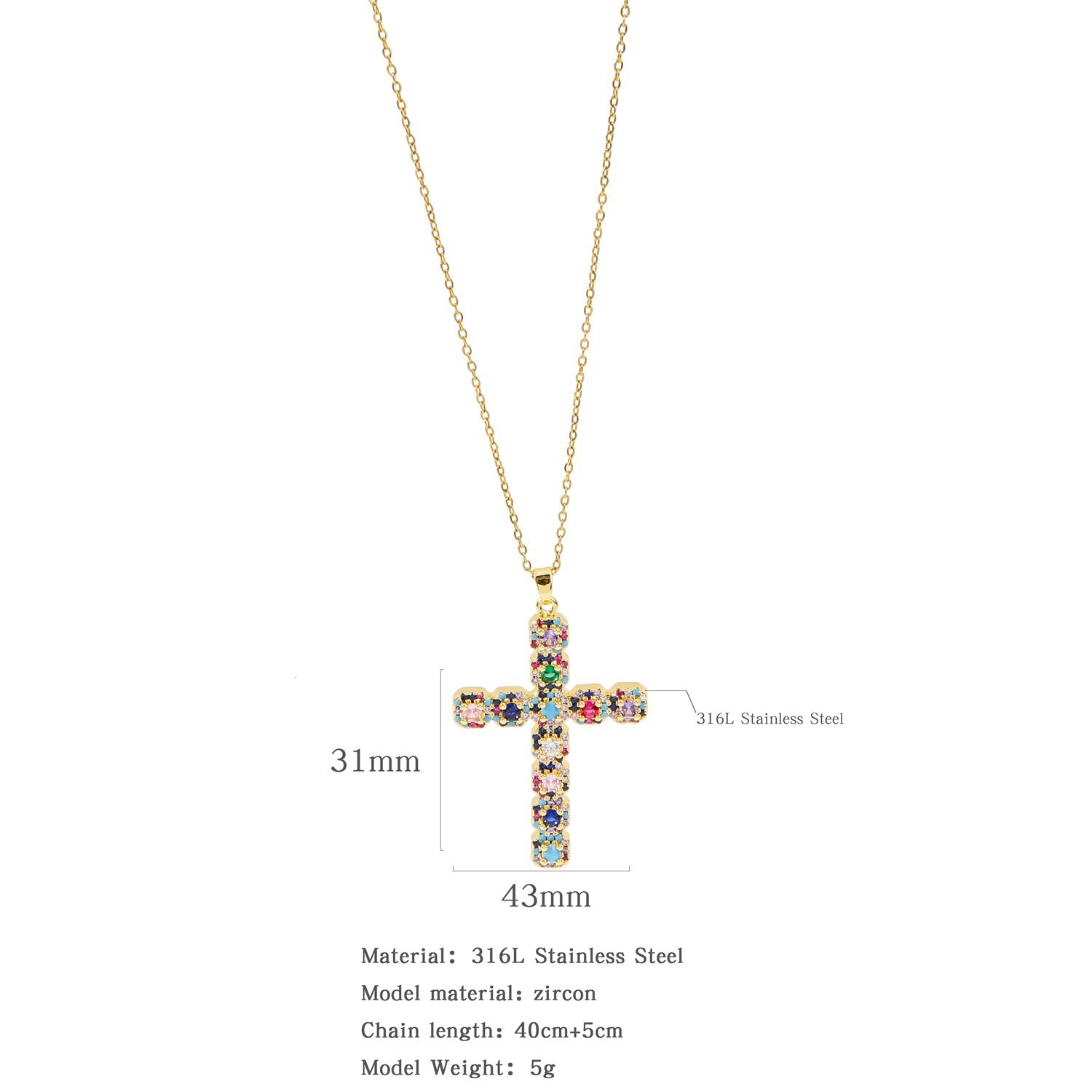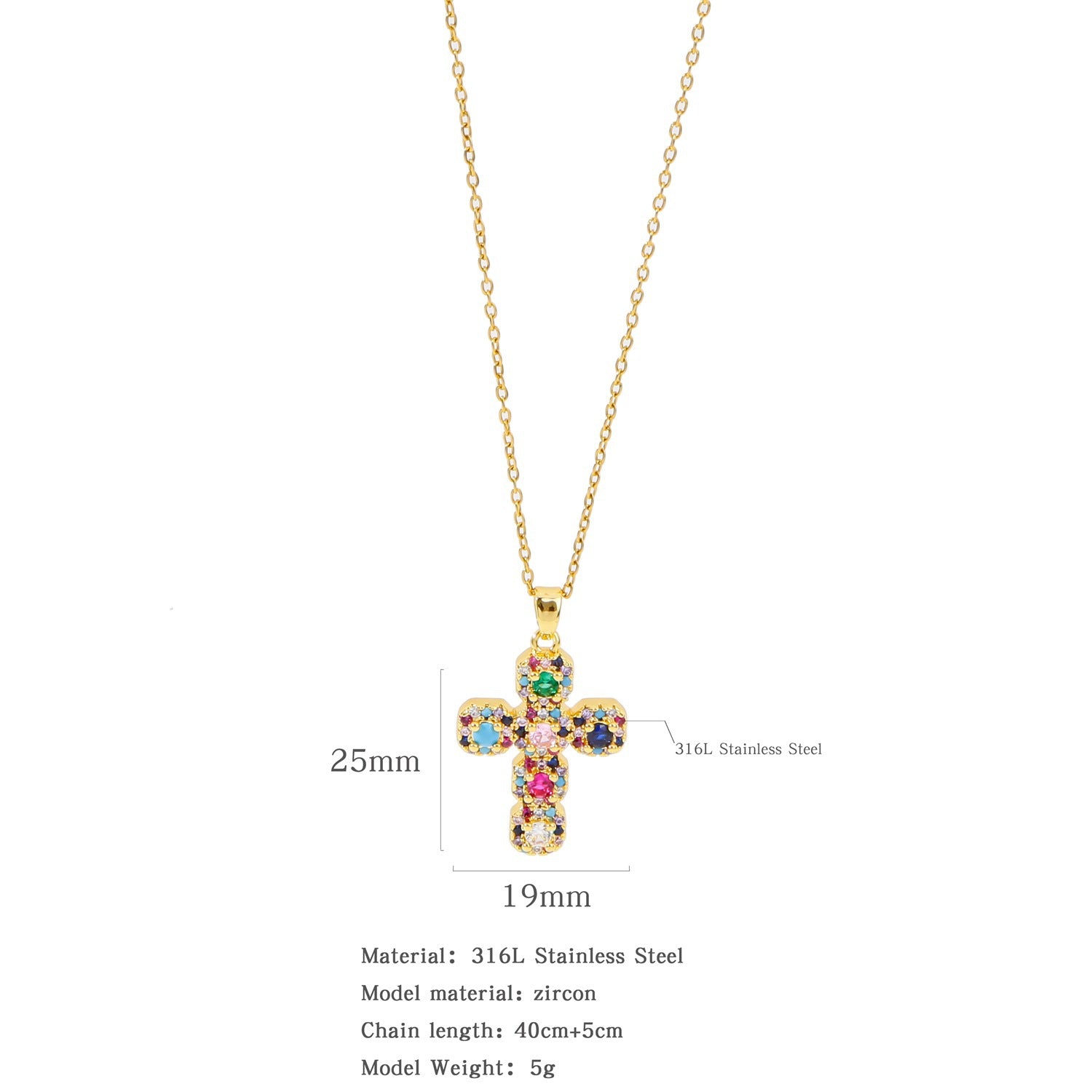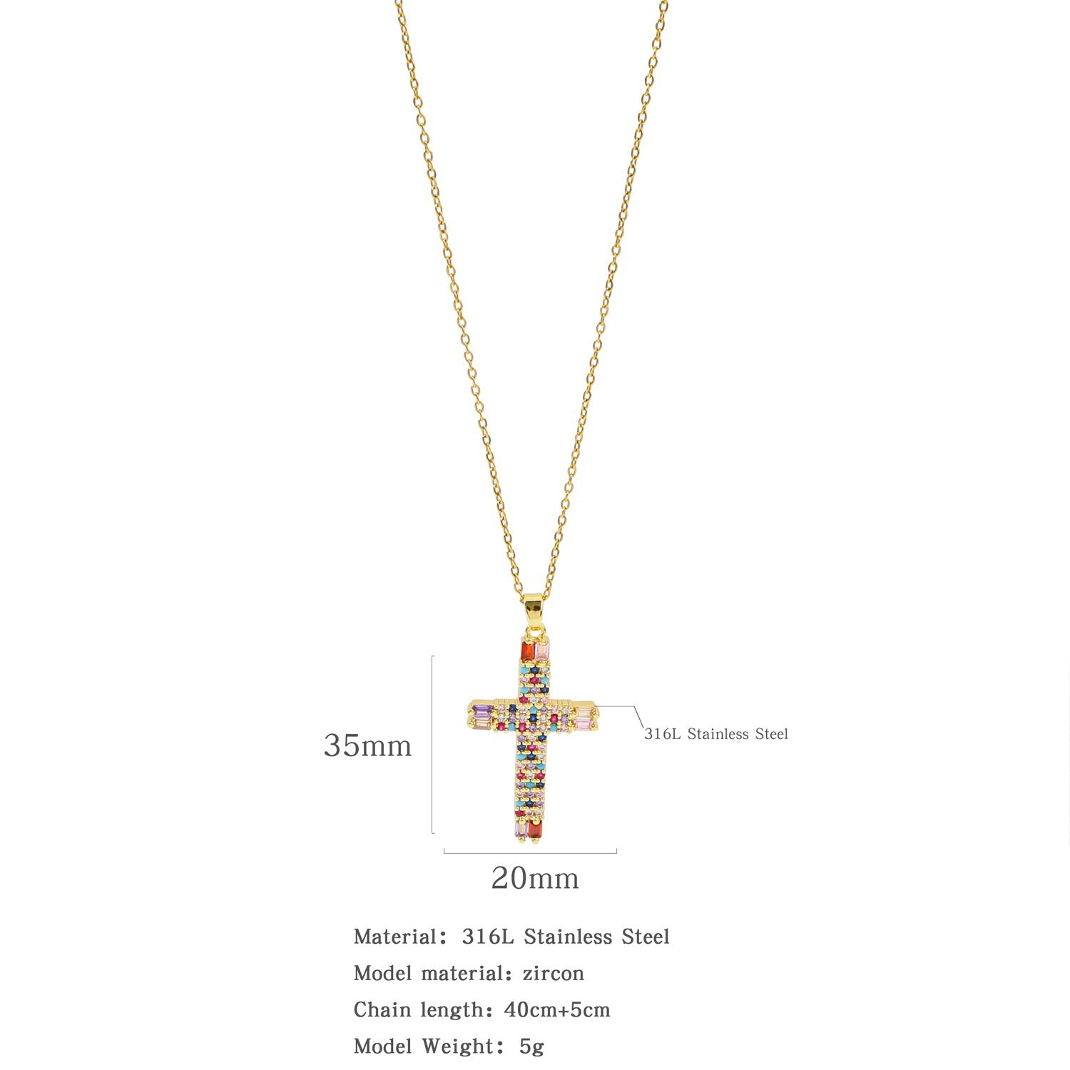 Glam Zircon Cross Pendant Necklace for Women in Copper Plated Stainless Steel
