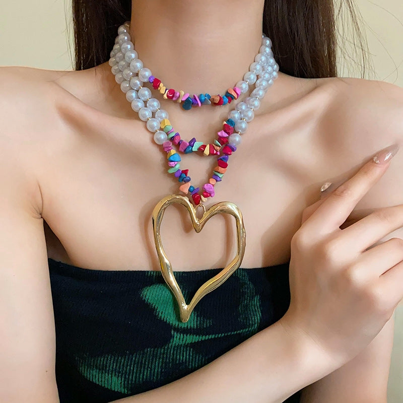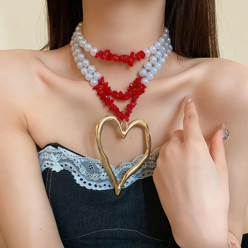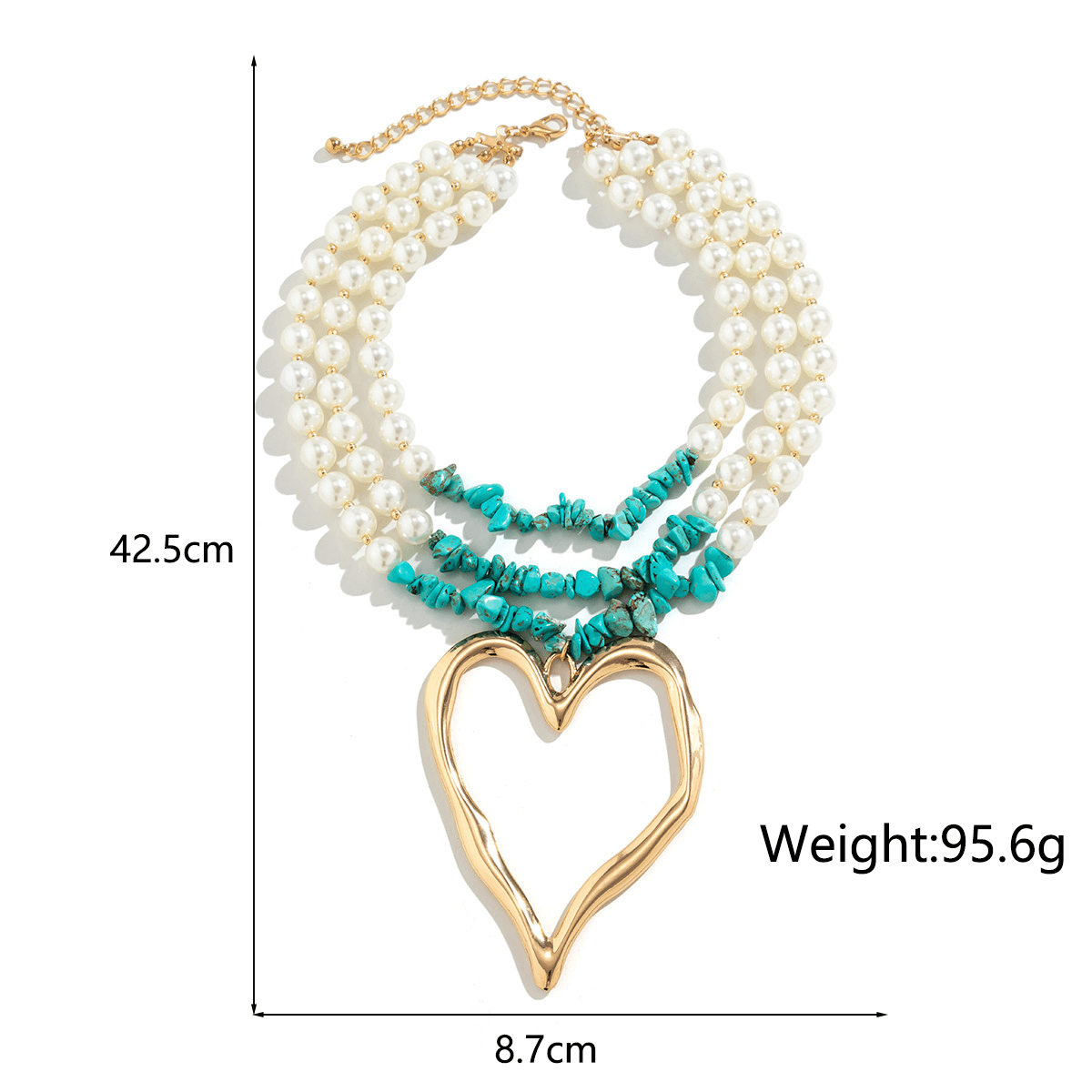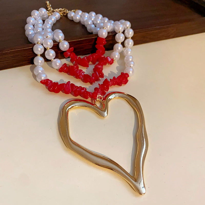 Glam Heart Shape Imitation Pearl Beaded Pendant Necklace