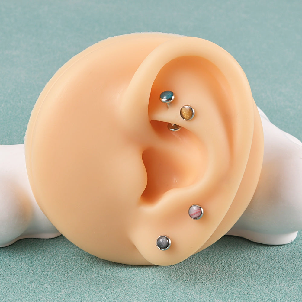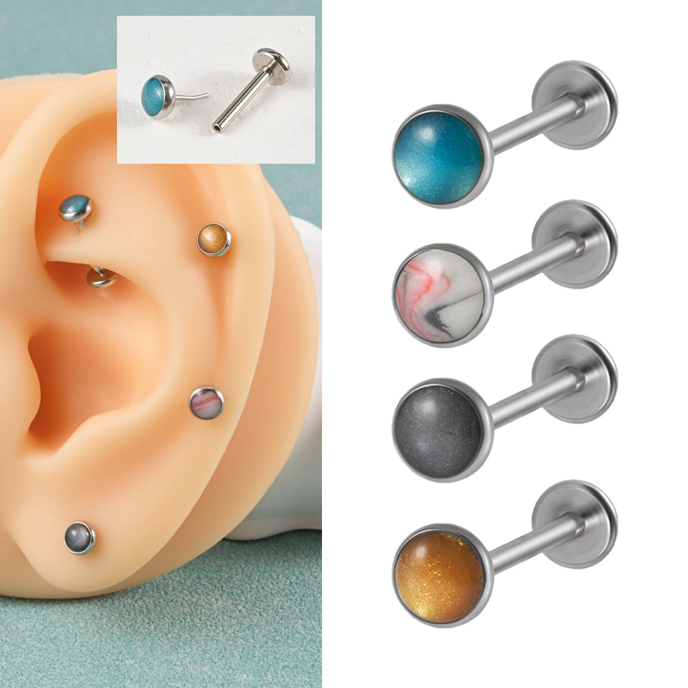 Glam Shiny Round Stainless Steel Lip Rings with Resin Inlay and Starry Sky Cartilage Stud Earrings